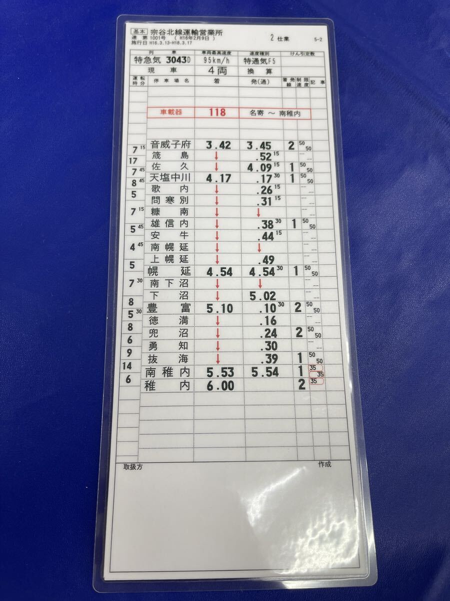 送料無料 中古 スタフ 運転士 時刻表 JR北海道 宗谷北線運輸営業所 旭川運転所 特急 気動車 2枚セット