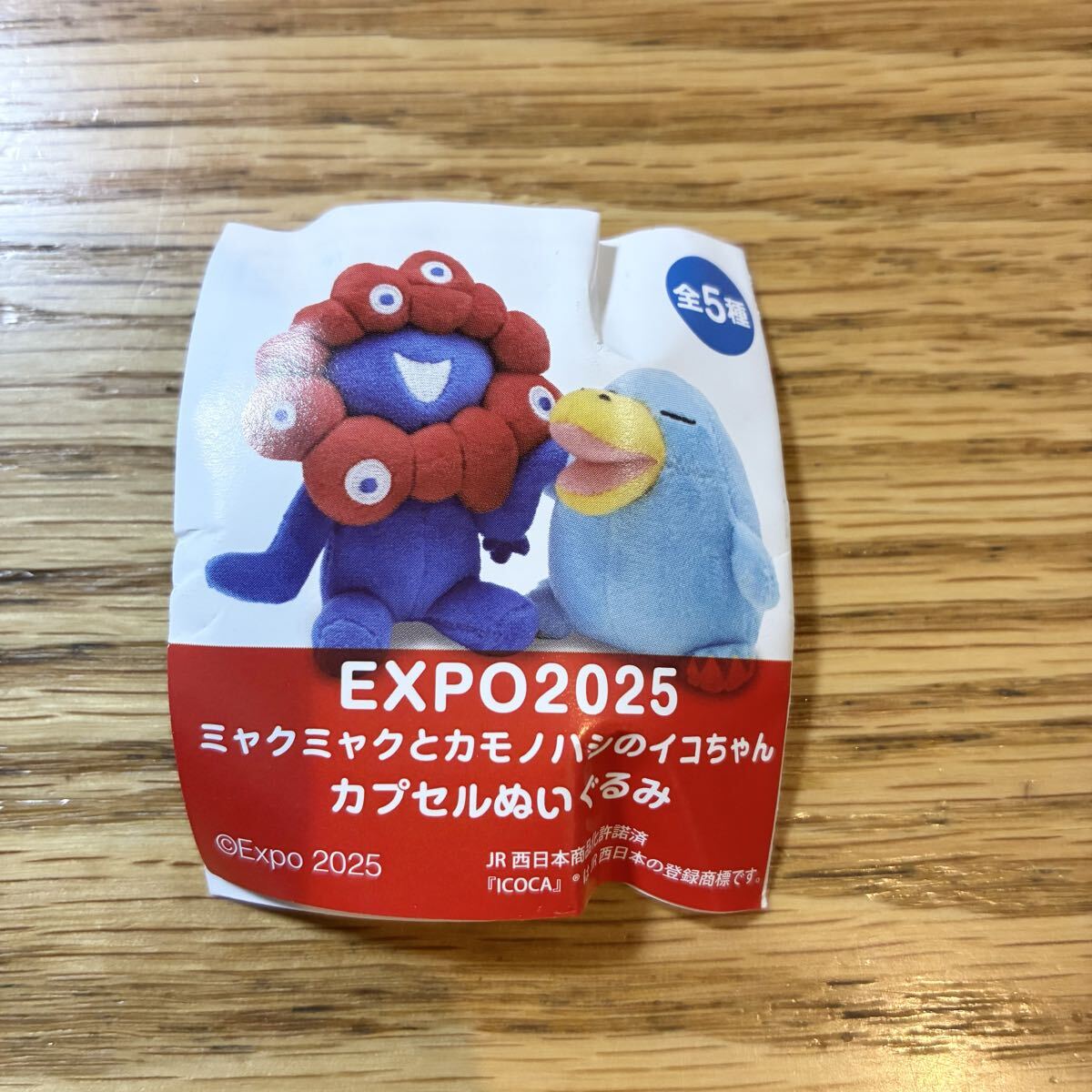 大阪関西万博のJR西日本ショップ限定の「ミャクミャクとカモノハシのイコちゃんカプセルぬいぐるみ」です。