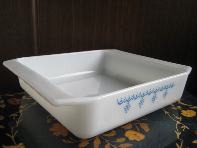 ☆オールドパイレックス スクエア キャセロール グラタン皿 スノーフレイク スノーフレーク