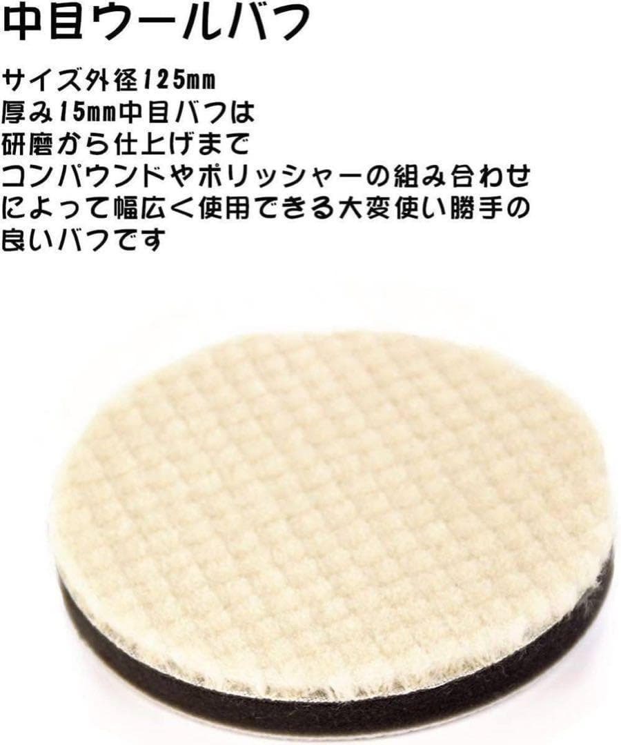 ウールバフ 3枚セット 研磨バフ 手磨き 車磨き用ウールバフ ソフト バフ 羊毛バフ ポリッシャー 研磨用ウールバフ スポンジバフ 3個 仕上げ用 超微粒子 荒目 中目 細目 塗装 スポンジ 直径12.5cm