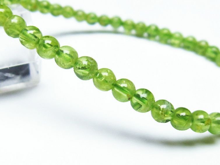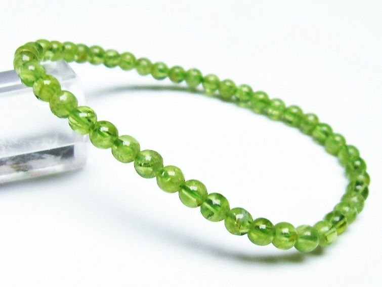 ■商品名: ペリドットブレスレット ■商品ID: T283-10282 ■商品重量:約 6.1g ■商品サイズ:内周約:156mm(±5mm)粒直径約:4mm(±0.5mm) 【ペリドット(橄欖石)】 ペリドットは陽光を透かした夏の葉のような、明るく透明な黄緑の石です。その外見からも8月の誕生石として相応しく、明るく闇を吹き飛ばすエネルギーを持つとされています。 太陽の石とも呼ばれるペリドットは、闇夜でも輝く性質から、暗闇に光をもたらし困難の中でも希望を見出す力があると古くから信じられてきました。自身の持つ暗いエネルギーを発散させ、太陽の光を当ててくれるとされています。ネガティブなエネルギーから身を守るお守りとしても有効とされています。 暗い妄想や怒り、悲しみなどのマイナス感情が気づかぬうちに沸いてくる時には、元となる心の傷を癒し明るく前向きに進めるように手助けするとされています。また、自信をなくして落ち込んでいる時には、希望をもたらすとされていますので、落ち込み傾向にある方にもお勧めです。 ■ワンポイント情報 出会いを恋に発展させたり、社交性を広げ縁や人脈を増やすとされ、意中の人にも上手く近づけるようになるとされていますので、片思いの人の強力なお守りといえるかもしれません。また浮気がちな相手に持たせると浮気封じになるとされていたり、家庭を円満にするとされていますので既婚者にもお勧めです。 |