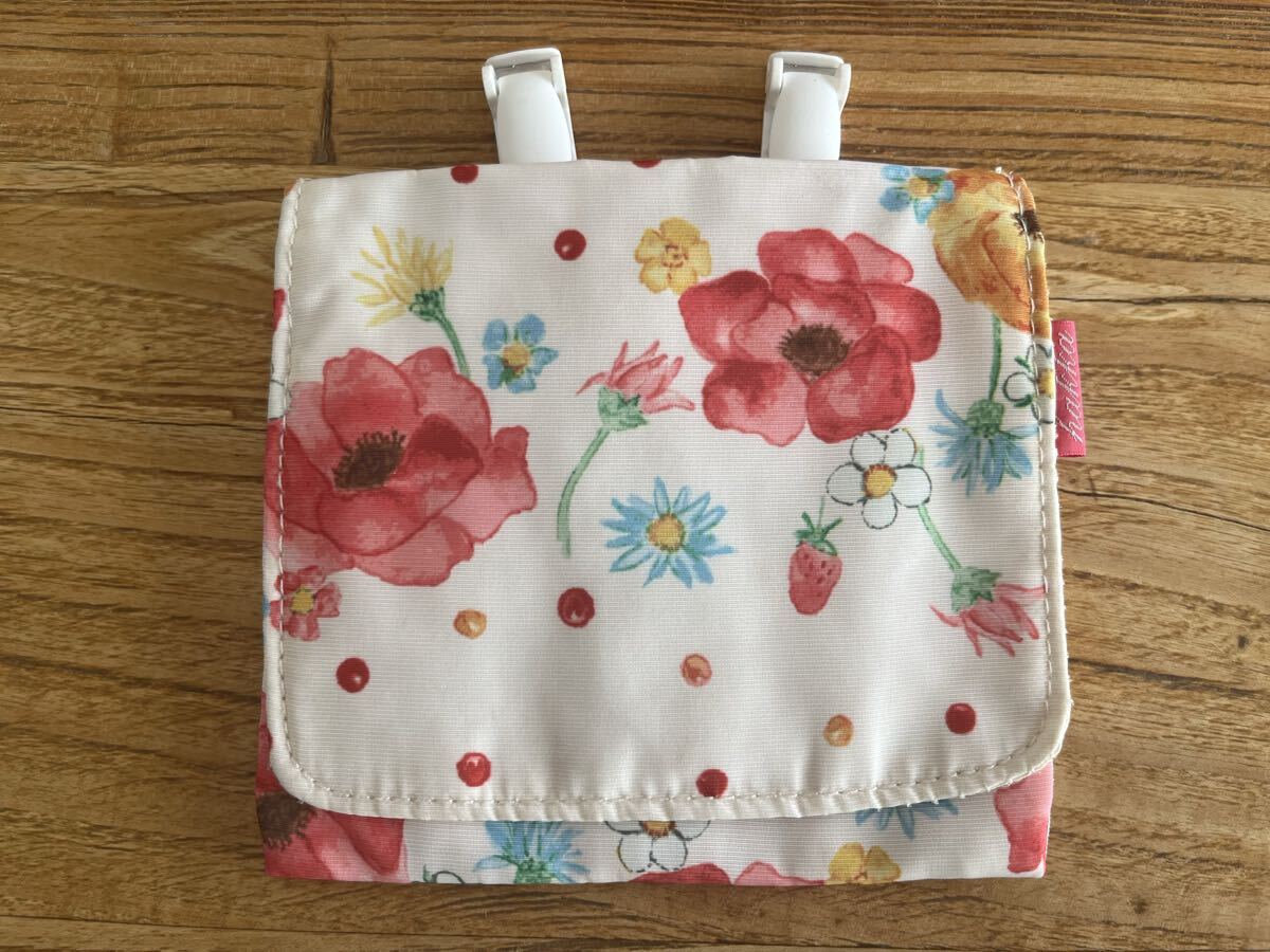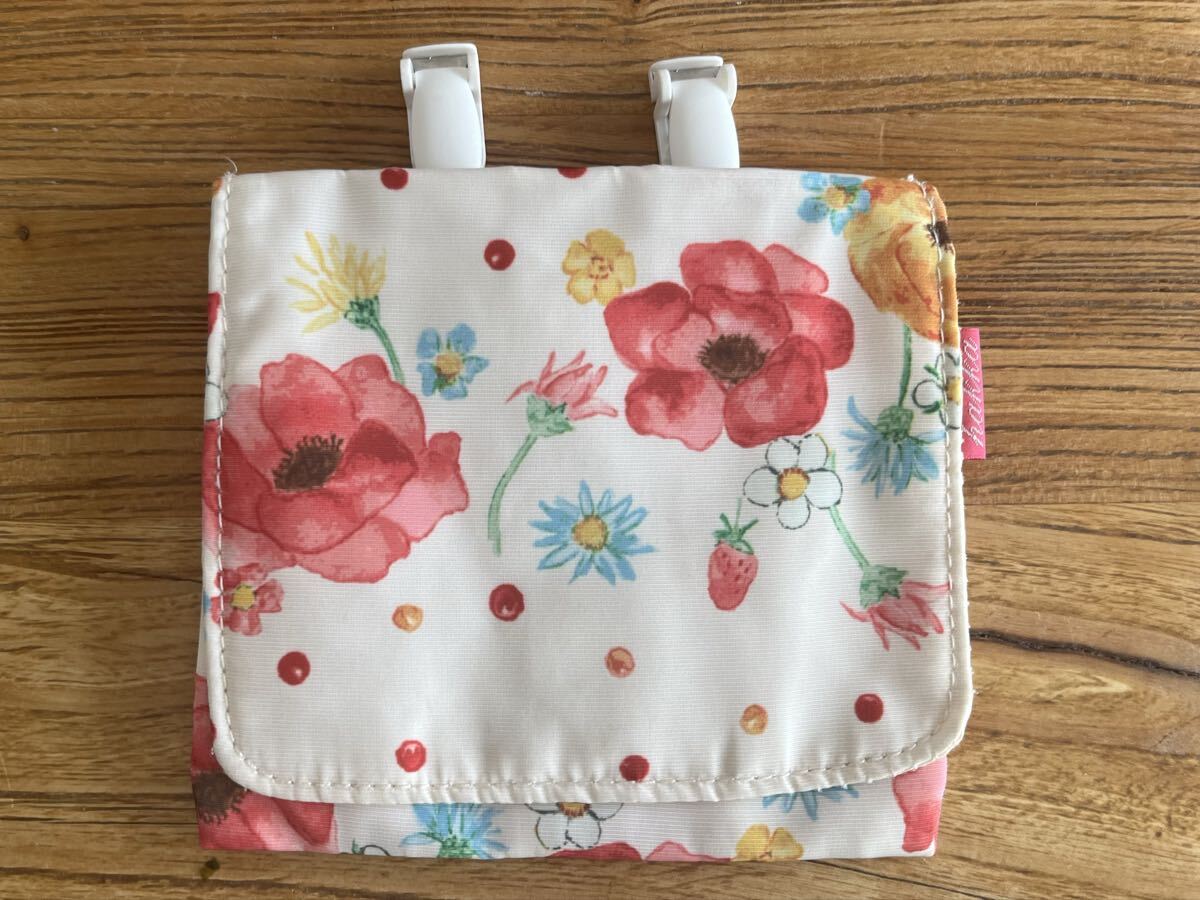 ★ 使用1-2回 美品 ★【 hakka ハッカ 】★ 移動ポケット ★ お花 いちご ★ ポーチ ★ クリップポケット ★ ティッシュ ハンカチ 入れ★