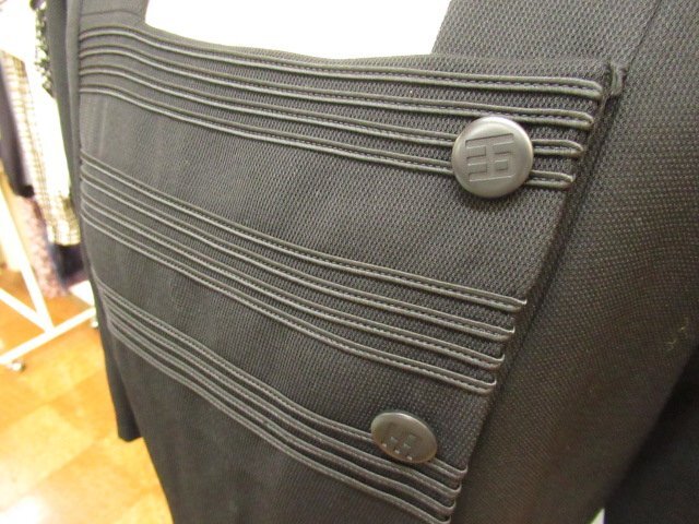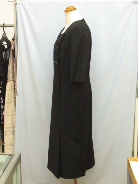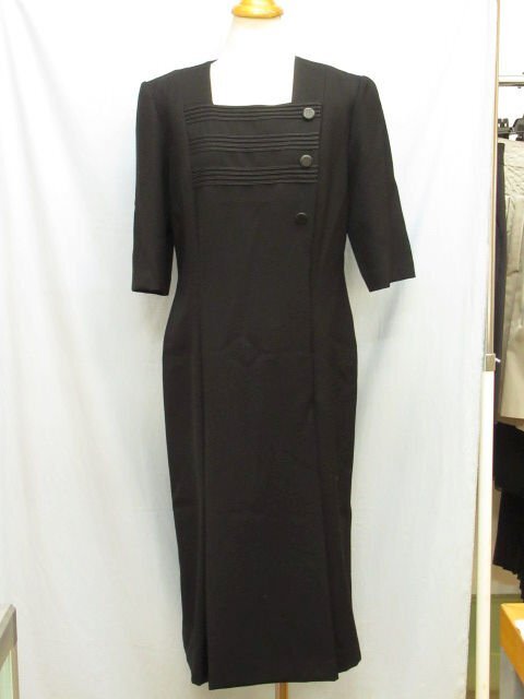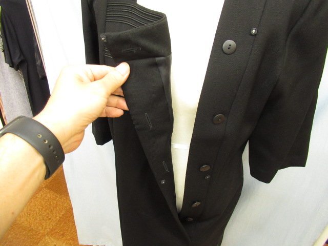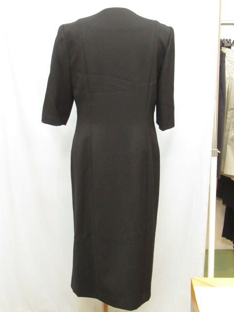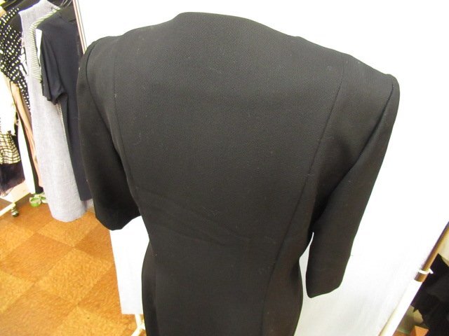 【色】 黒 【サイズ】 表記:11AR メジャー採寸: 約 肩幅39 袖丈37 胸囲46 丈106 【素材】 毛100 裏地:キュプラ100 【付属品】 なし 【参考定価】 -円 【商品説明】 ハーディ・エイミスの胸元に画像のようなストライプの飾りのある半袖ワンピースです。 前側に画像8のように隠しボタンとホックにより脱着するようになります。 -------------------------------------- 【状態ランク】 外観:A 中側:A 【状態説明】 ・特に目立つような汚れやシミなどはありません。 ・保存時のシワがあります。 ・目立たない程度の小さな汚れ等はご了承下さい。 |