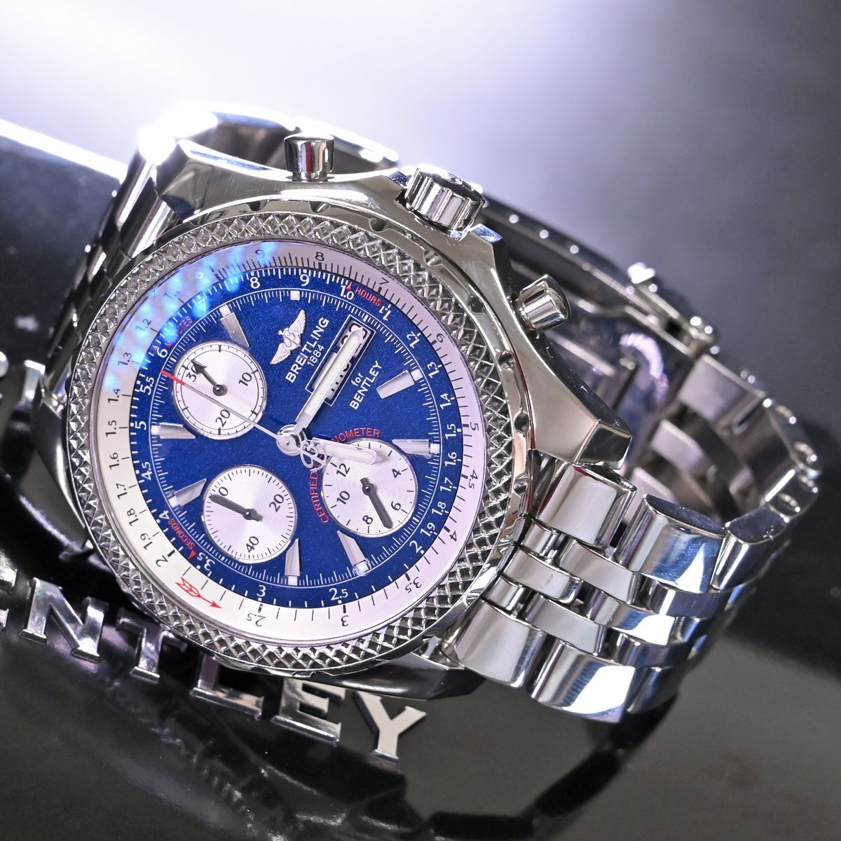 ブライトリングのA1336313 ベントレーGT クロノグラフです。 「グランド・ツアラー」。 モーターファンの心の琴線に触れるこの名前は、ハイウェイを何時間でも快適に駆けることができる高級スポーツカーを表した言葉です。 この「ベントレーGT」はグランド・ツアラーのイニシャルに相応しい、高級感と美しさを表現したクロノグラフです。 ベゼルのパターンと共にベントレーを連想させる作りになっています。 市場でも圧倒的な人気を誇るモデルなのでお探しの方も非常に多いかと思います。 ※基本動作確認済。 |