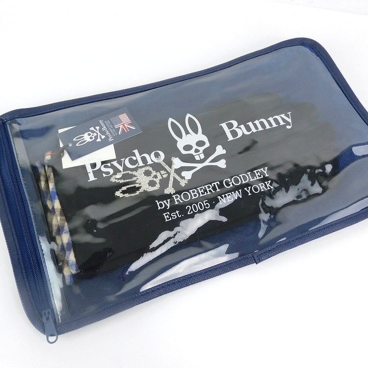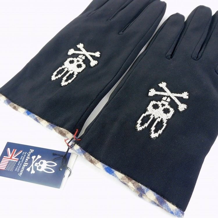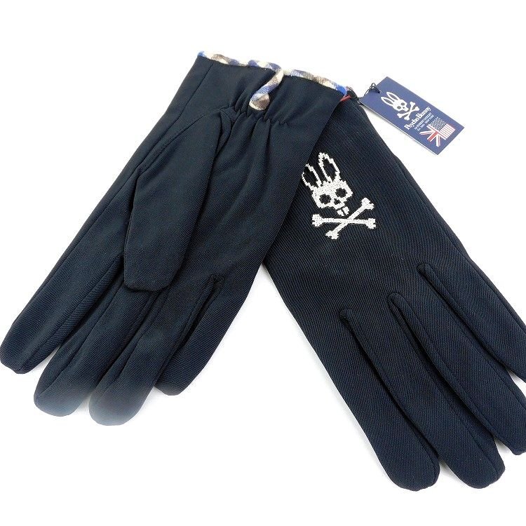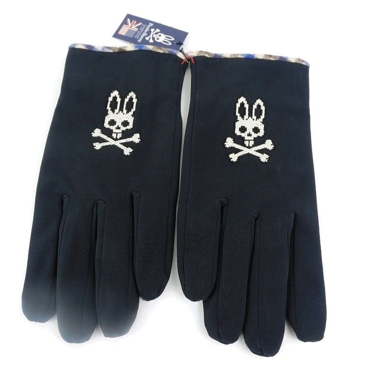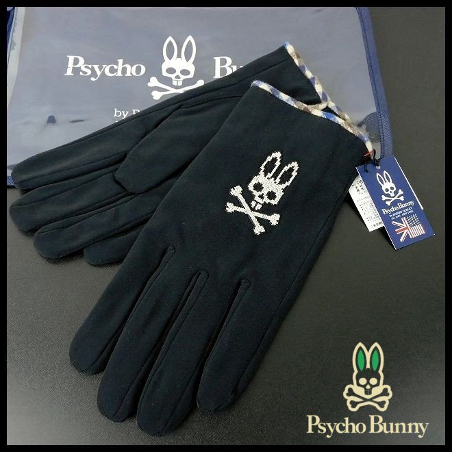 新品 1円~ Psycho Bunny サイコバニー 24cm 黒 手袋 スカル&ボーンバニー グローブ ケース付き メンズ 紳士【1688】