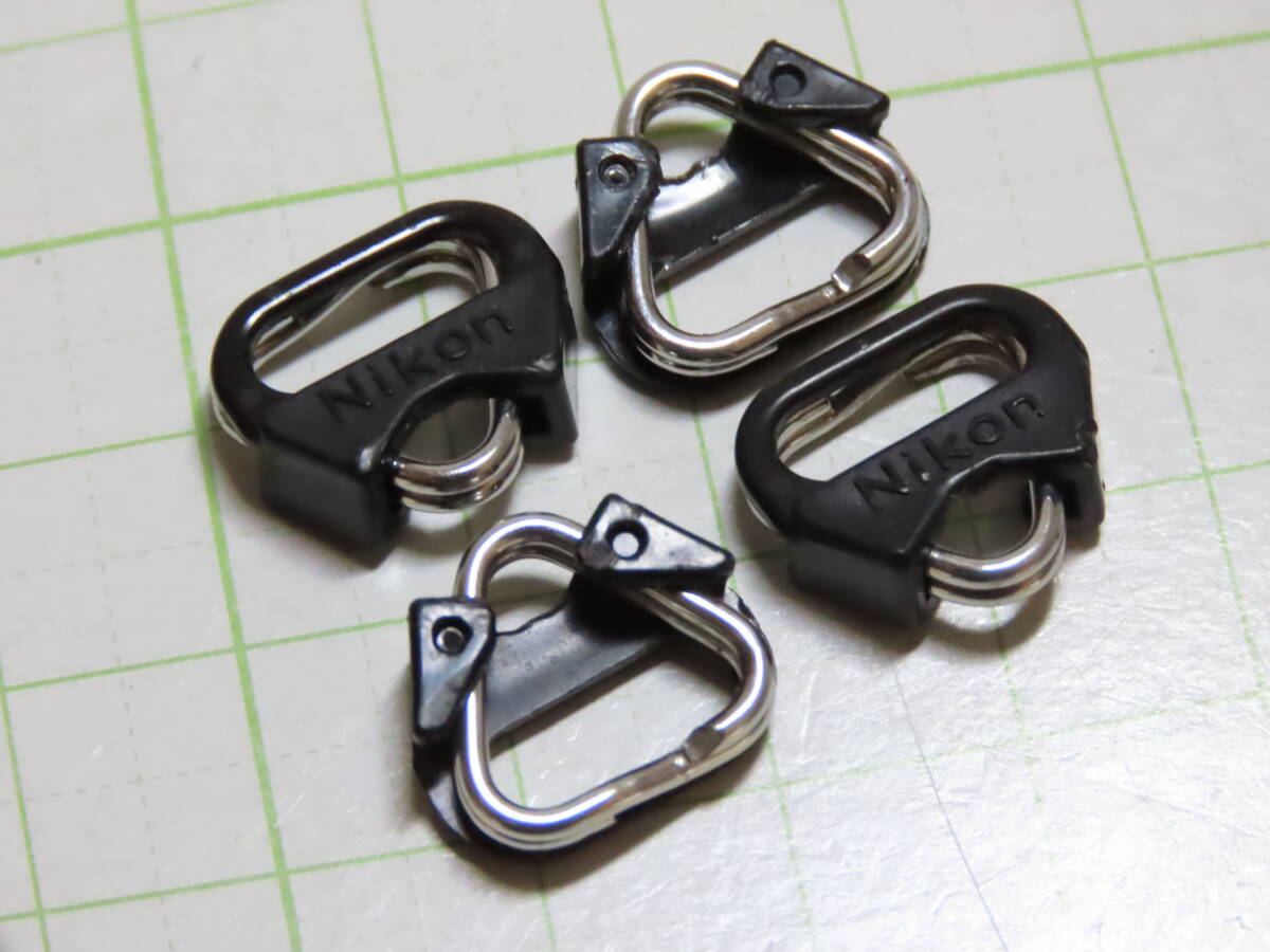 1)Nikon Part(s) - Triangular grommet and grommet cover for Nikon camera shoulder strap ストラップ取付用吊り環、環カバー 2台分