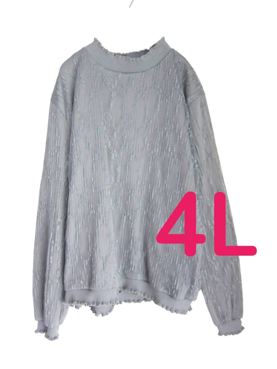 送料無料 S69 美品 【3XL・4L】 レース重ね着風 ニットソー 長袖 大きいサイズ ゆうパケットプラス