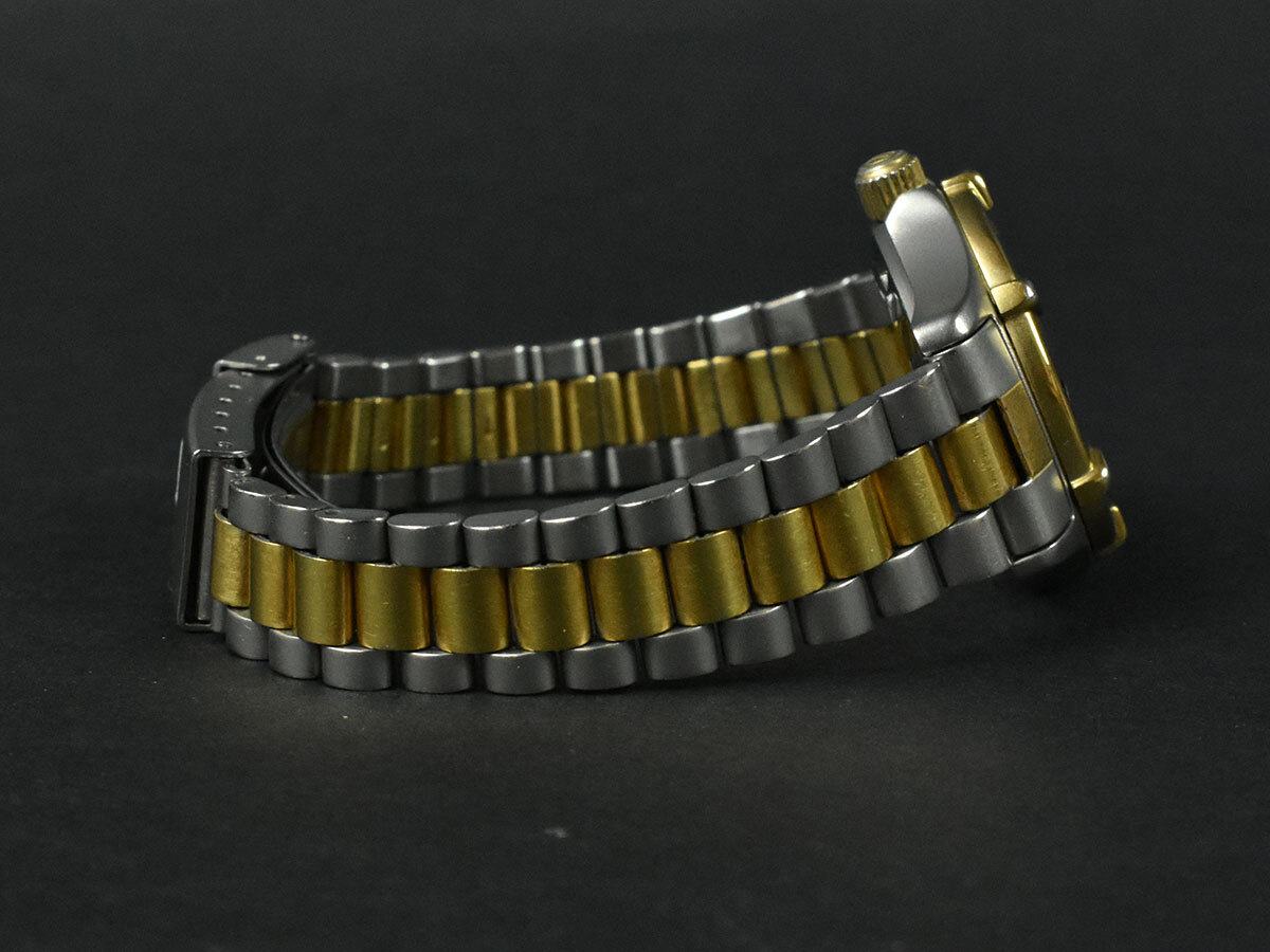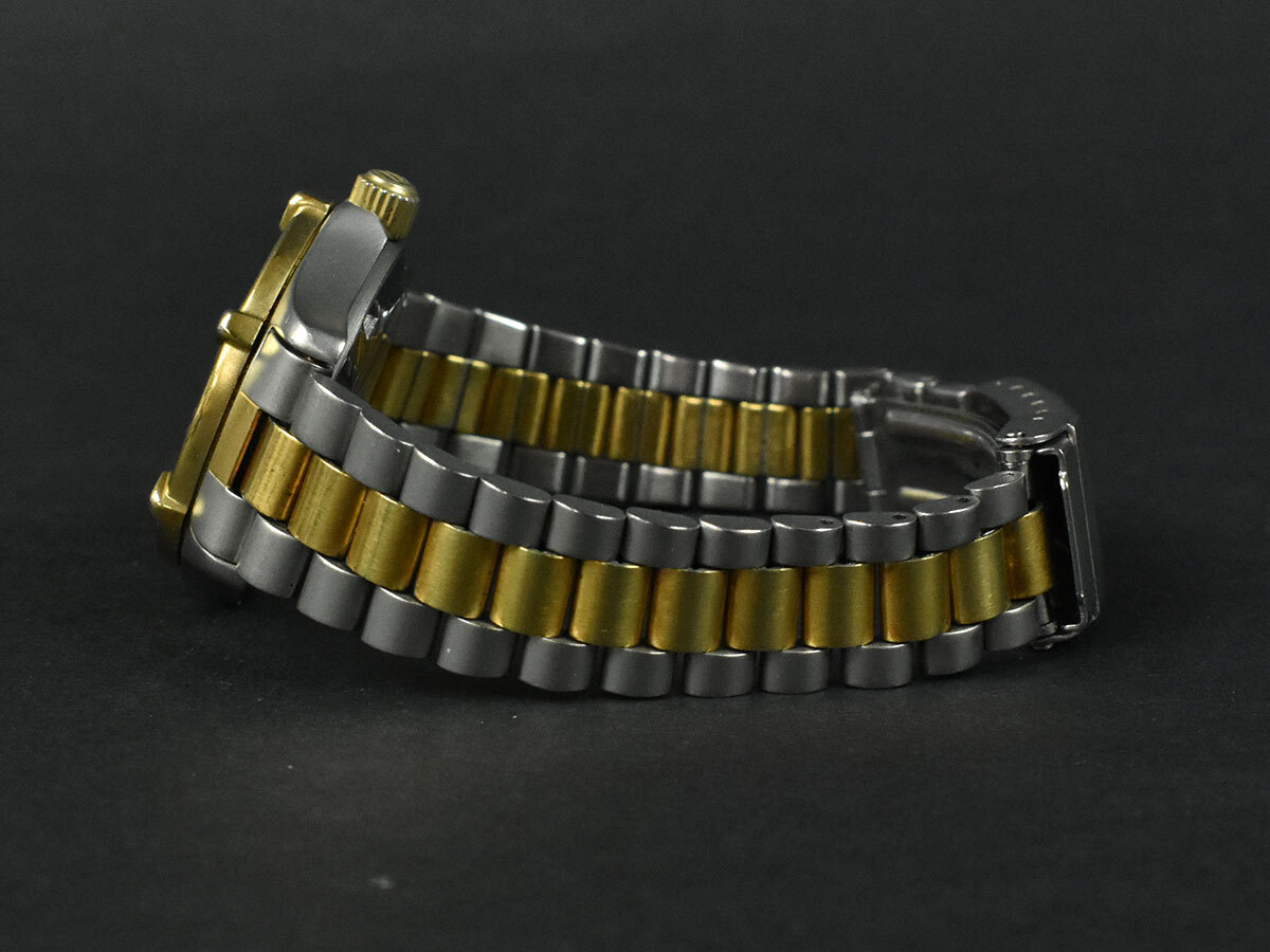 裏蓋・バックルにスレ・クスミ、ベゼル・リューズにメッキ剥がれ、ベゼルの周りに僅かなサビがございます。 やや使用感が窺えますが、いずれもご使用には差し支えなく、まだまだお使いいただける商品です。 |