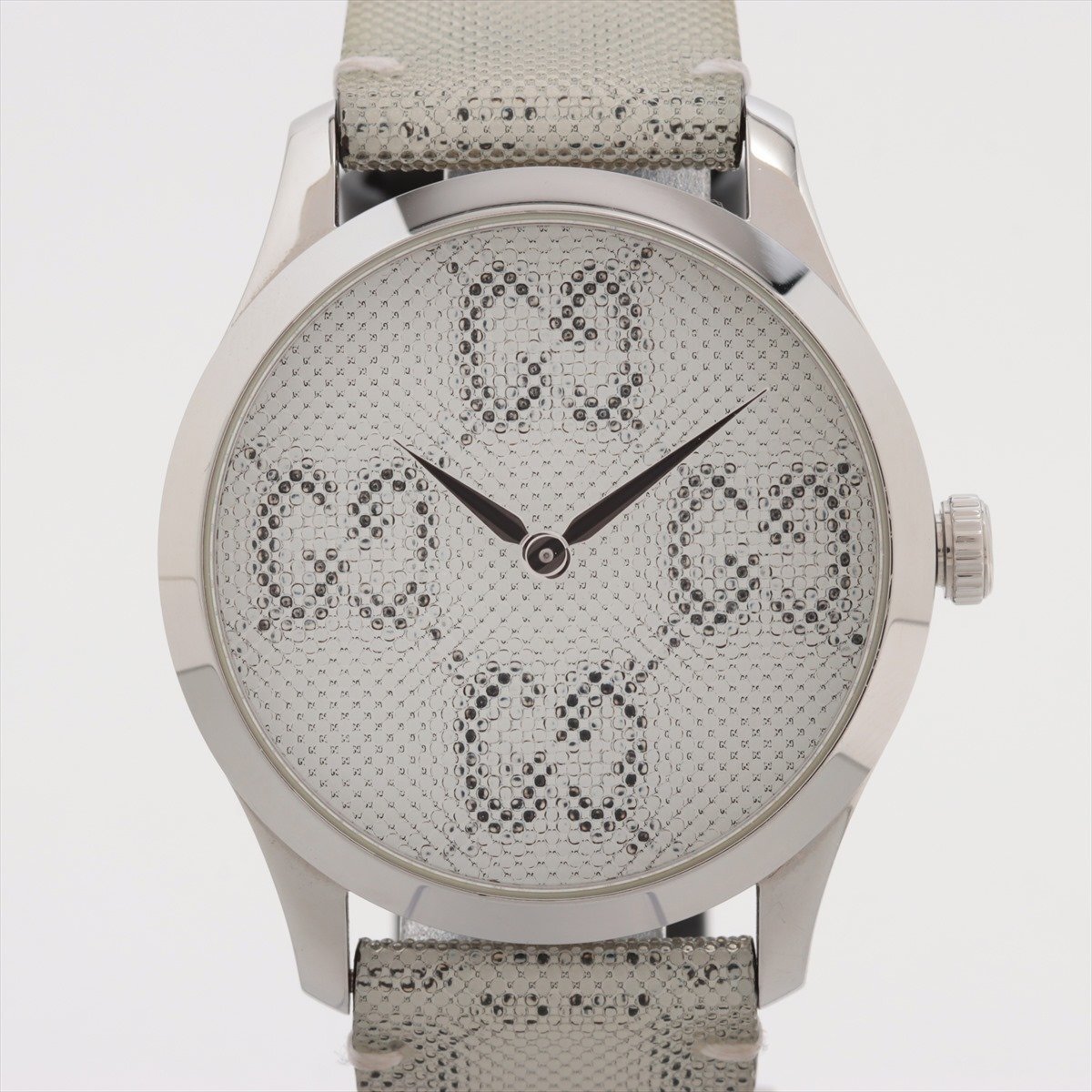 ■ 中古品 参定12.3万■ グッチ GUCCI ■ Gタイムレス ホログラム 126.4 ■ クォーツ ホワイト 白 3D ステンレス メンズ YA1264058