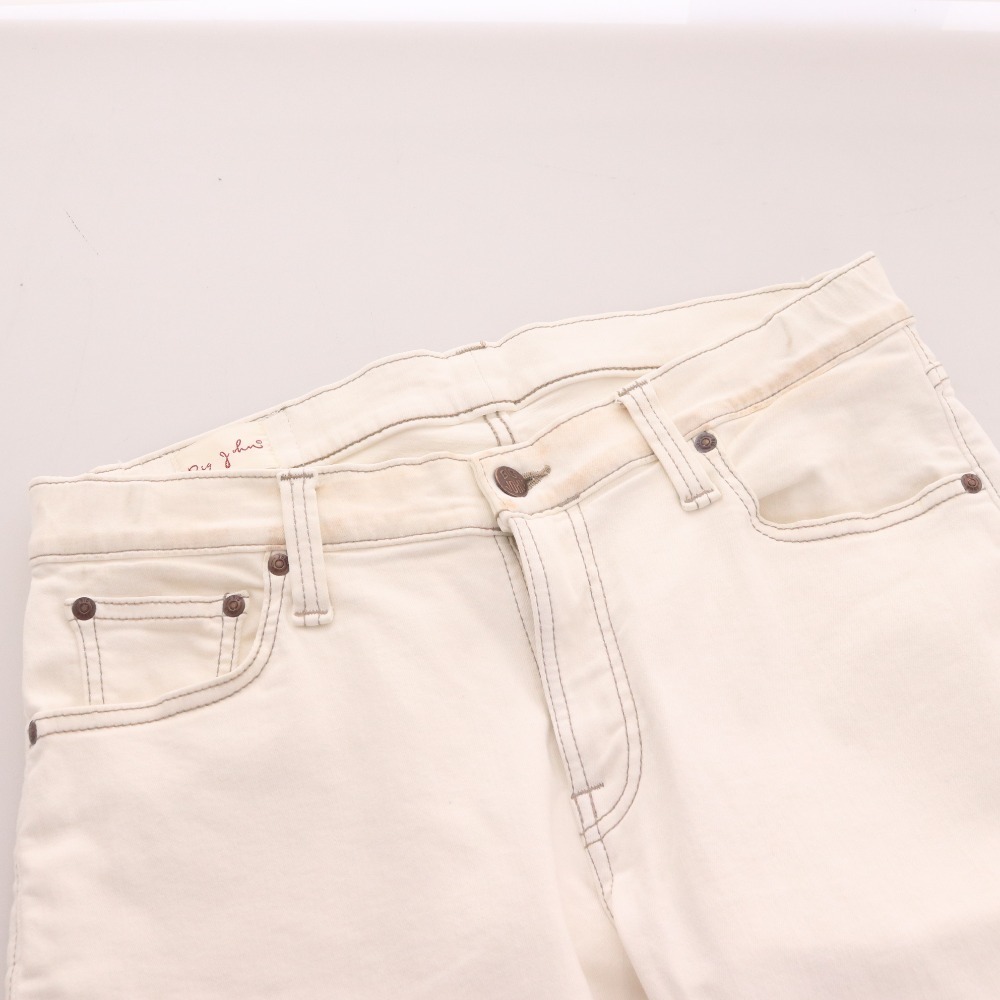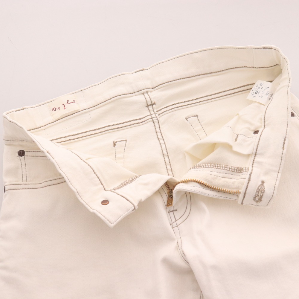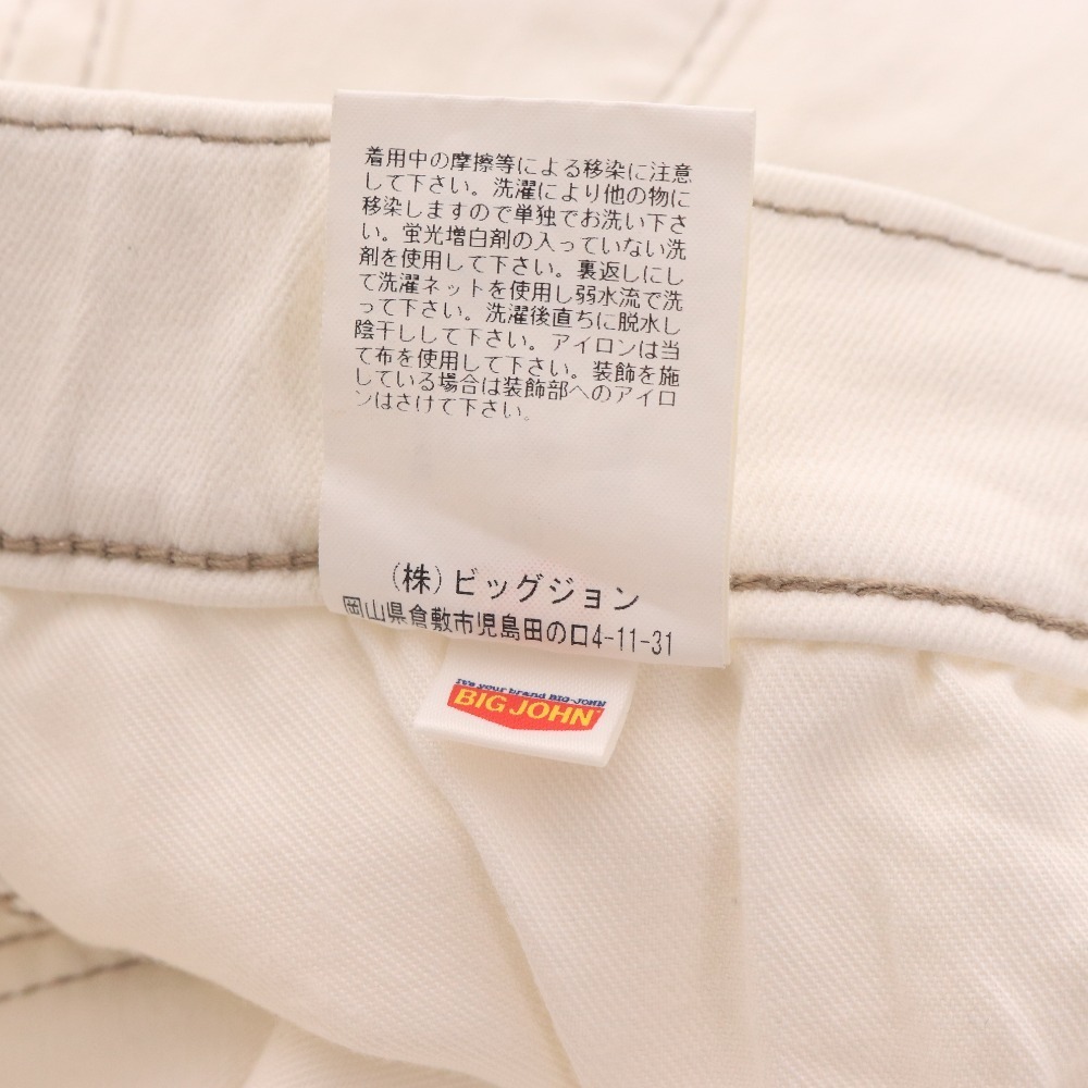 ビッグジョン デニムパンツ ジーンズ ボトムス MMM134J ハイパワーストレッチ メンズ 30 ホワイト 付属品:写真のものが全てです ●表記サイズ:30 ○実寸 ウエスト周り(平置き幅×2):81cm 股下:72.5cm わたり:29.8cm すそ幅:15cm 前股上:25.5cm ヒップ:100cm ⇒ アパレル商品のカラー基準・採寸方法・海外サイズ換算表 (参考)トルソー(マネキン)は男女ともMサイズです。 素材:綿:85% ポリエステル10% ポリウレタン5% | ||||||||||||||||