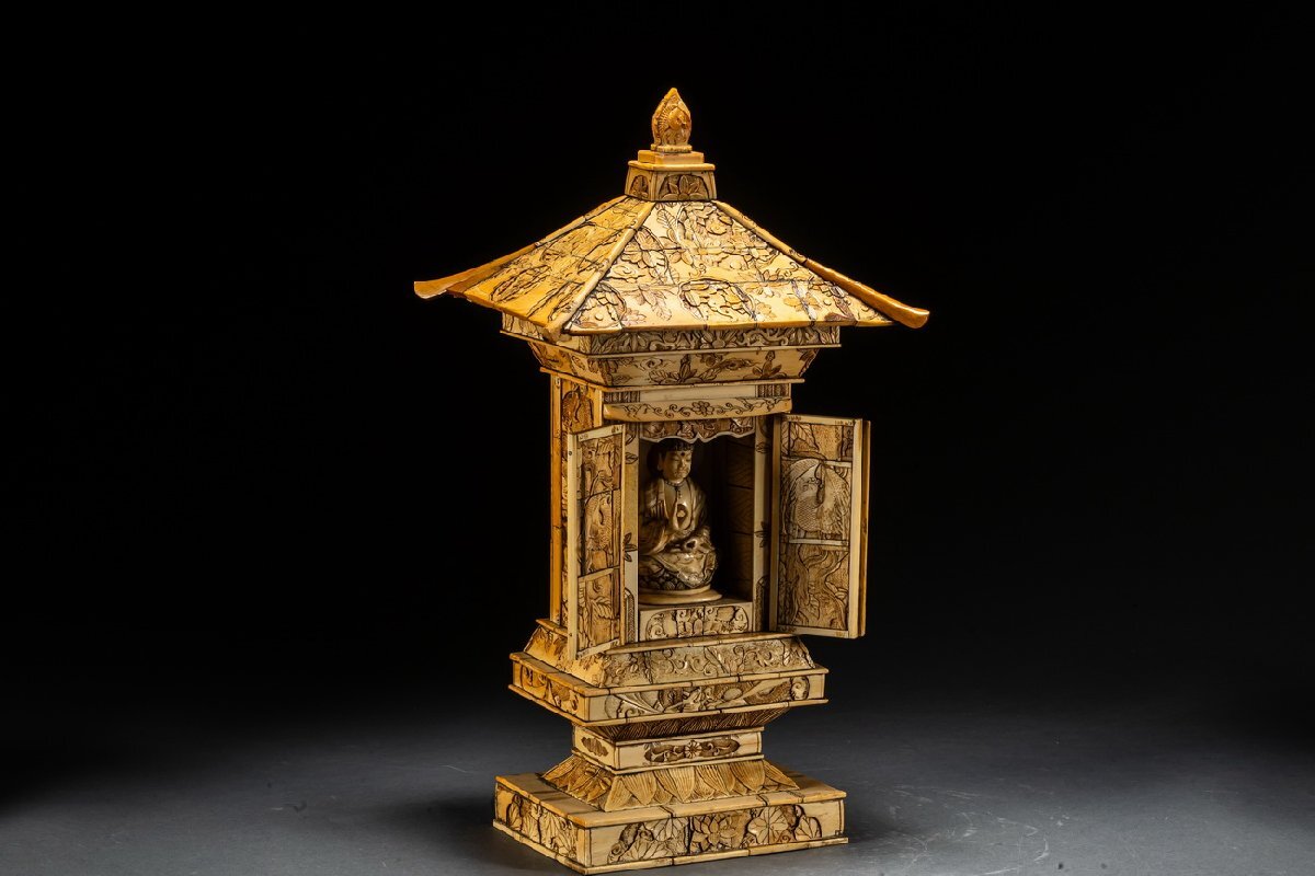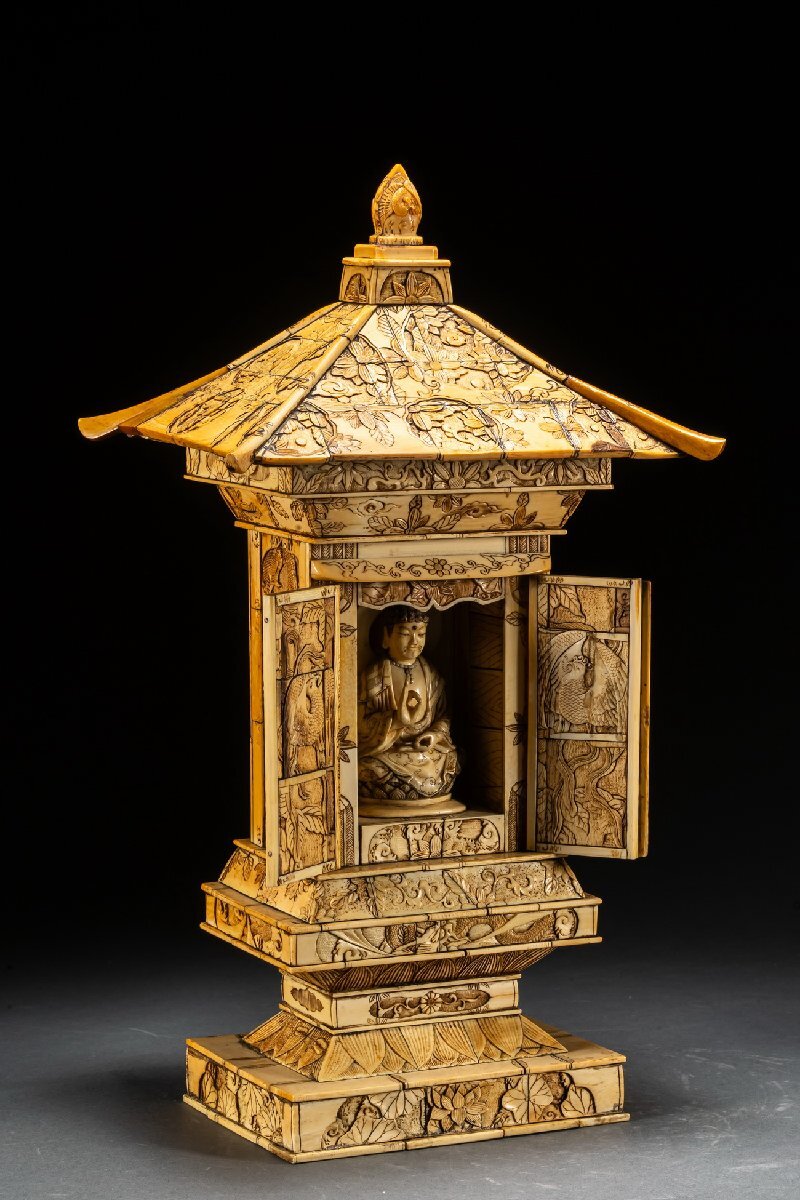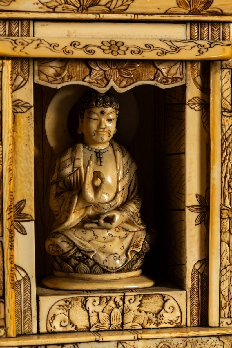 【雲錦】某有名オークション購入 江戸時代 阿弥陀如来造像佛龕 天然材 特殊白材 高級美術品 時代コレクション7L9-42S7