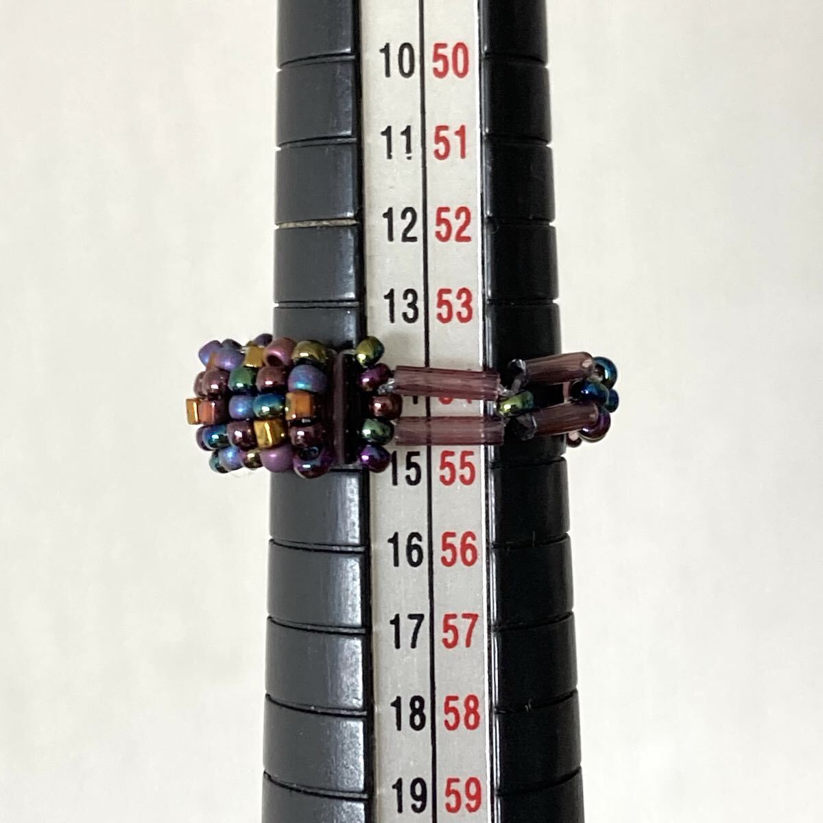 13-15号 ミニビーズと竹ビーズのリング ダークパープルミックス