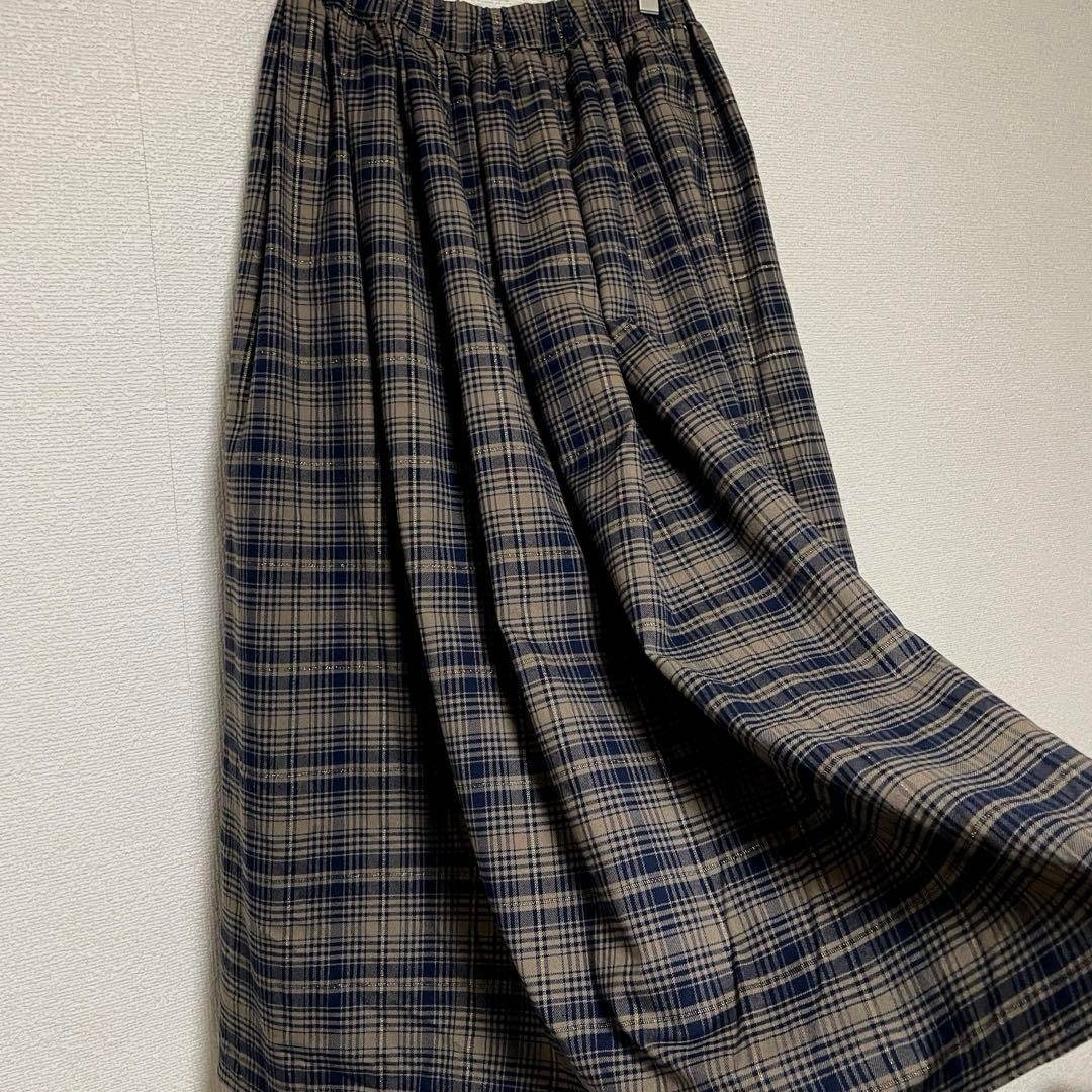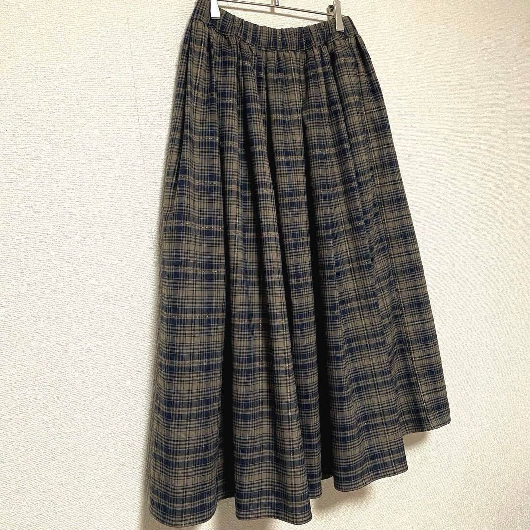 大きめに入ったタックギャザーやハリのある混合素材が丁度良いボリューム感を出してくれるロングスカートです。