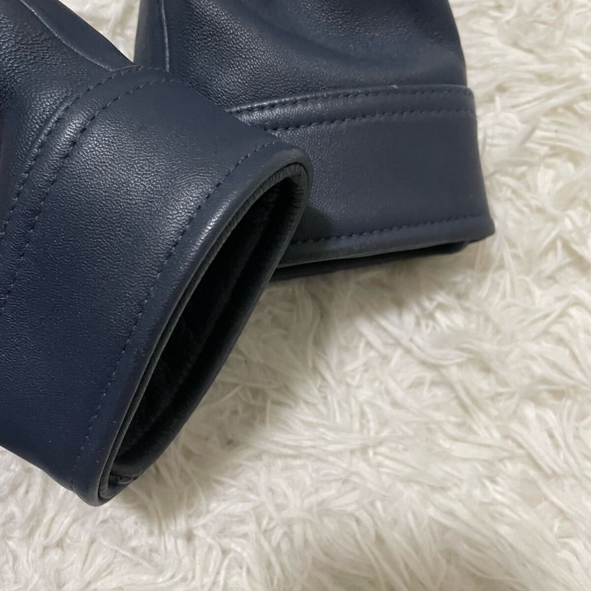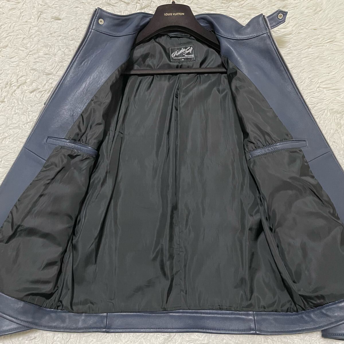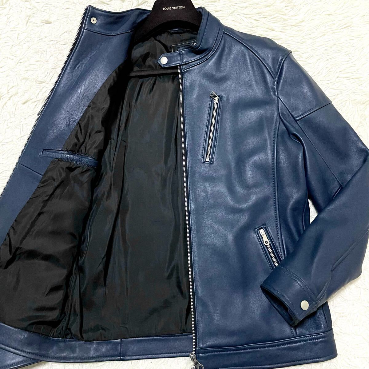 希少LLサイズ メンズビギ【極美品/人気カラー】ラムレザージャケット ライダースブルゾン ネイビー系 本革 羊革 MEN'S BIGI ツヤ感 色気