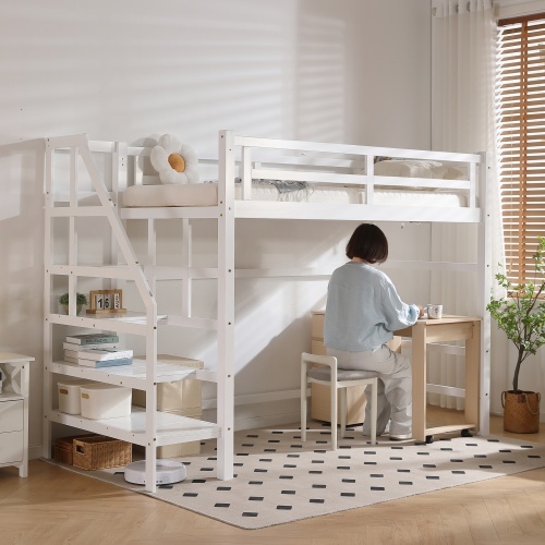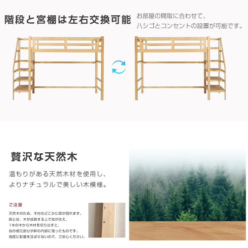 ロフトベッド 階段付き 天然木 コンセント付き シングル 宮付き 収納棚付き 収納 北欧風 大人 一人暮らし 子供ベッド ベッド 高さ172cm