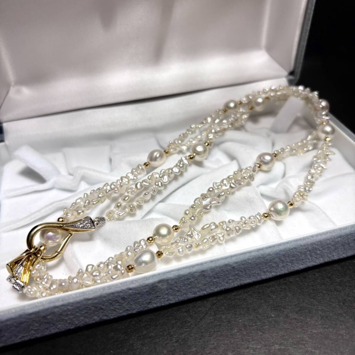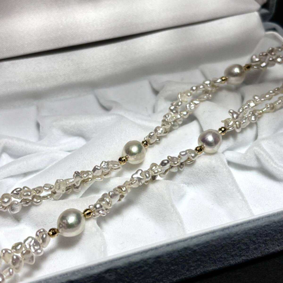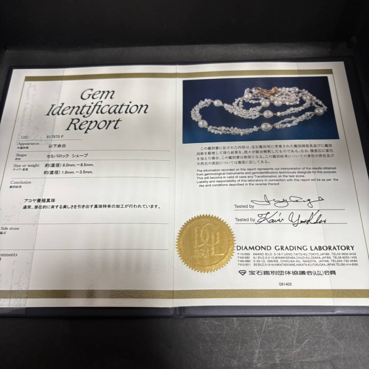 【Aランクダイヤ/テリ最強】あこや真珠 芥子パール ケシ ロング ネックレス 約8mm シルバー金具 pearl necklace 32g 70cm アコヤ 鑑別書付