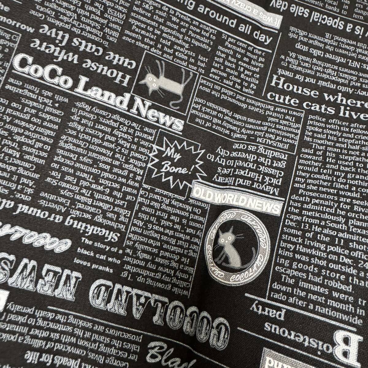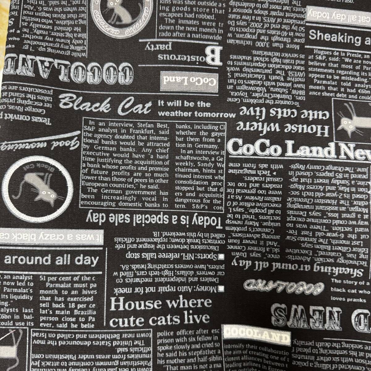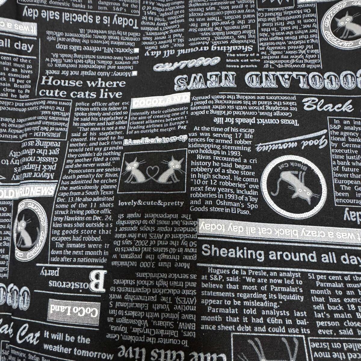 黒白★英字アルファベットの綿オックス生地1mはぎれ布ねこ黒猫ネコ英語ロゴ英字新聞