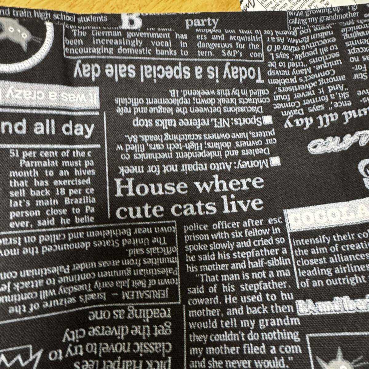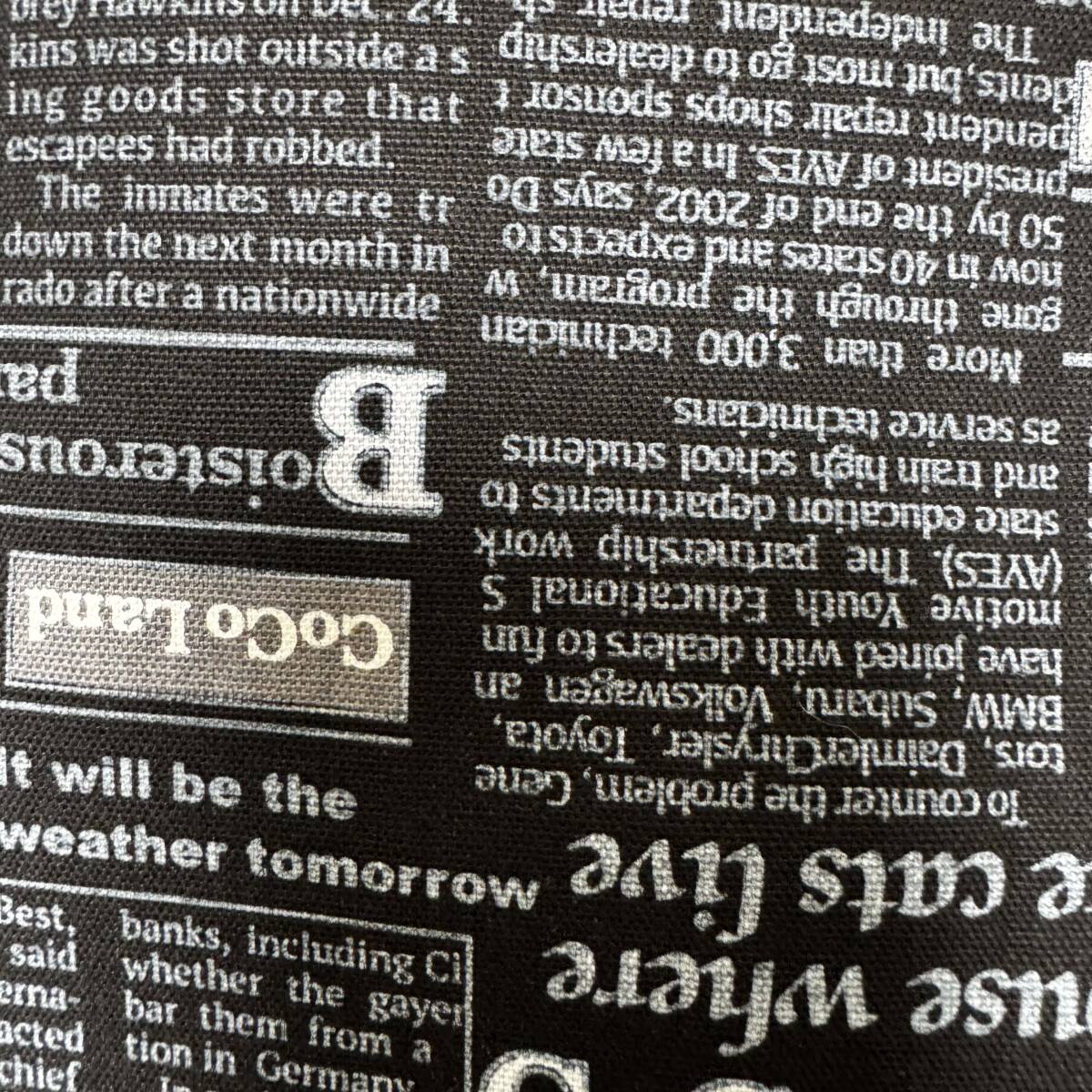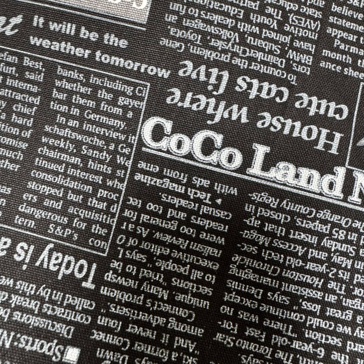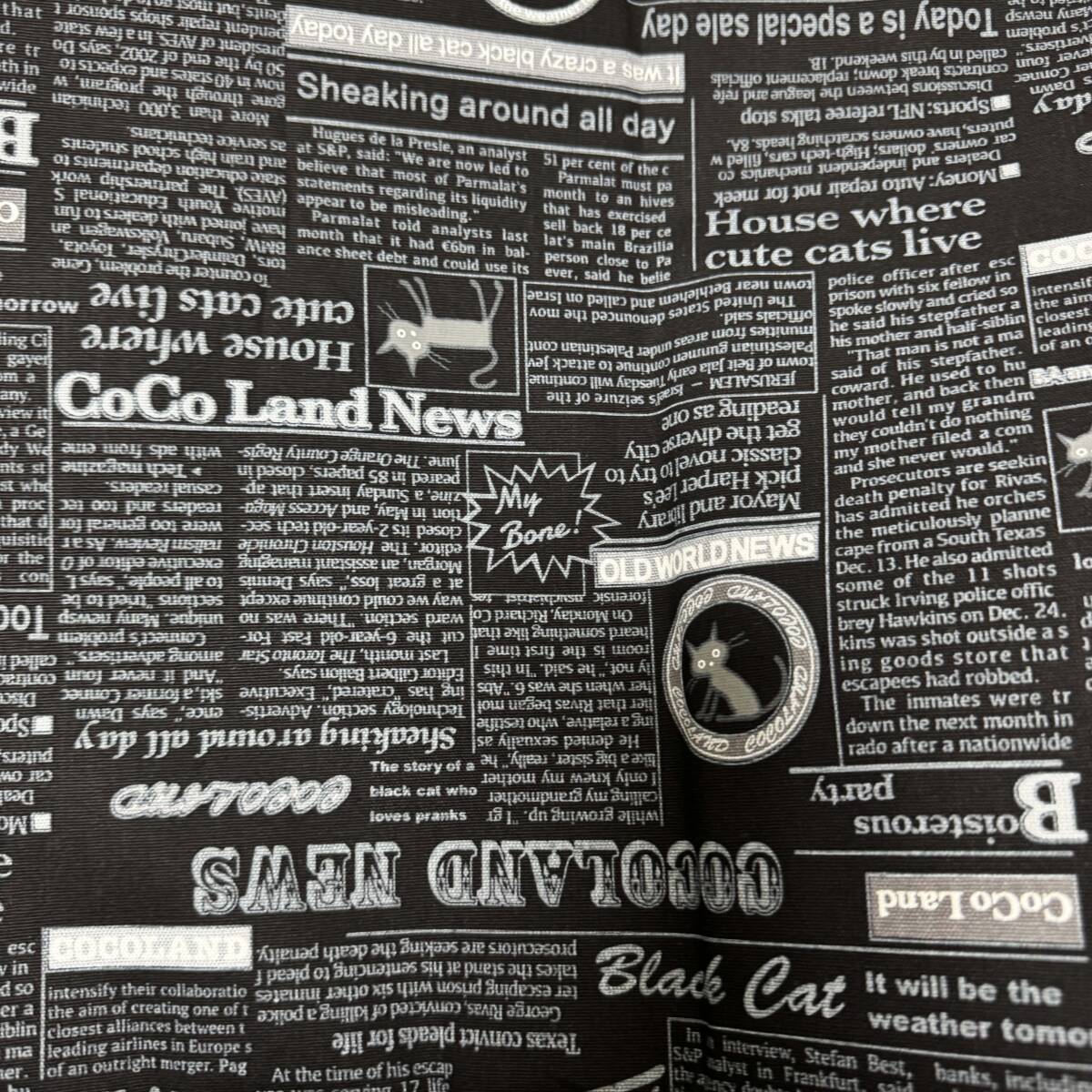 黒白★英字アルファベットの綿オックス生地1mはぎれ布ねこ黒猫ネコ英語ロゴ英字新聞