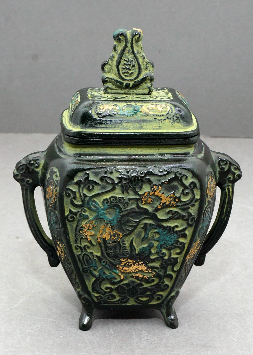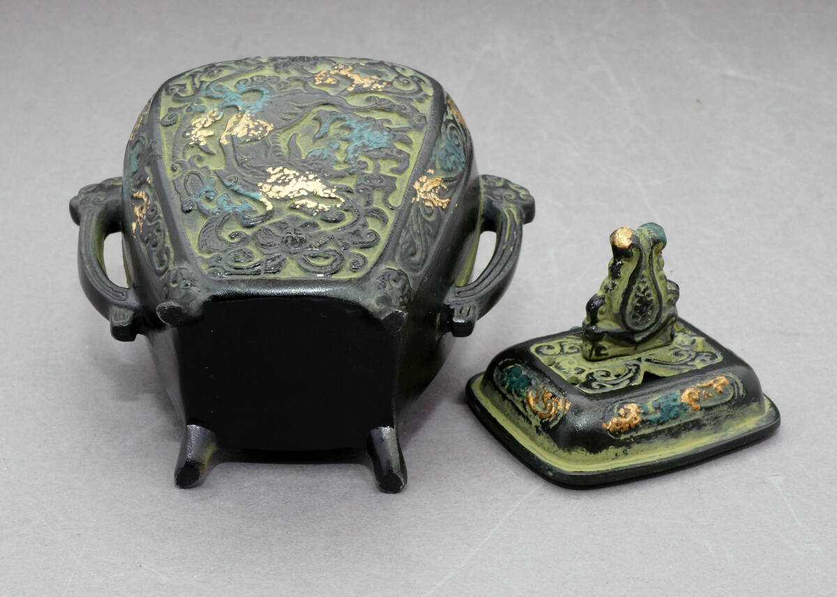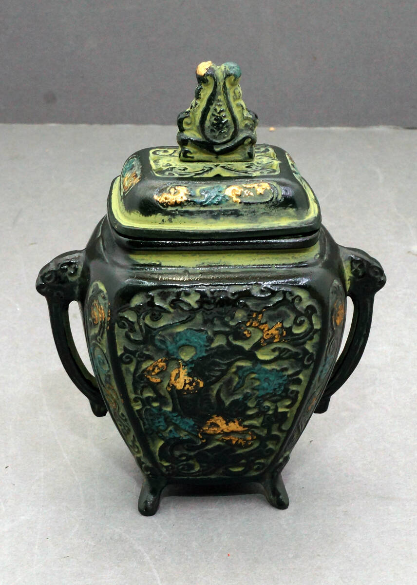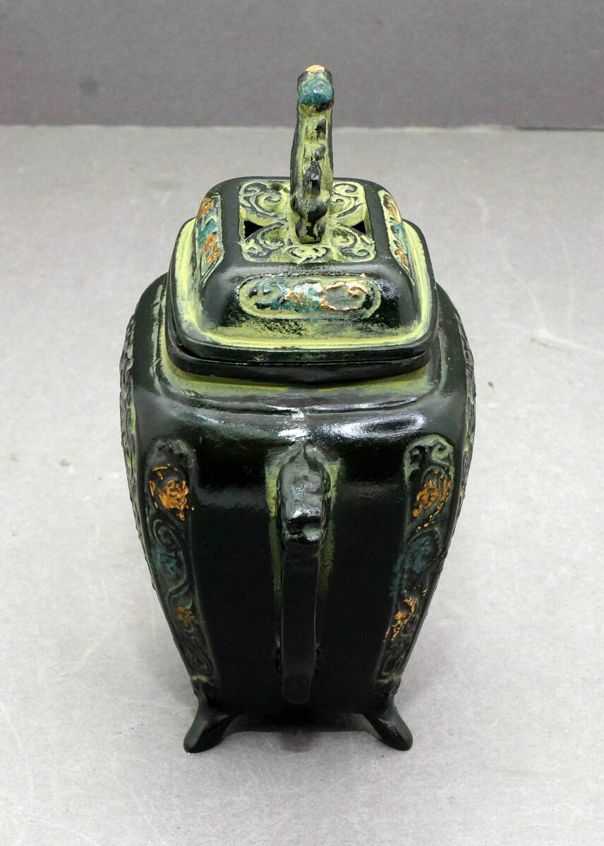 | 商品説明 | 四足香炉 銘無し 金属製 サイズ:W105㎜×D65㎜×H140㎜ 未使用品ですが経年保管による傷・汚れ等のダメージが御座います。 |