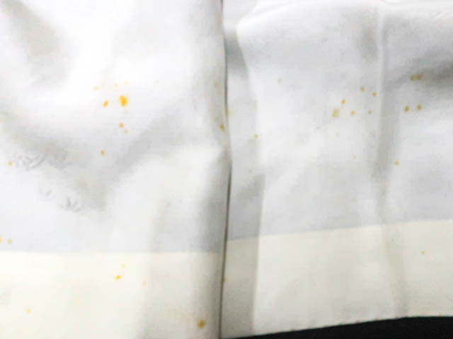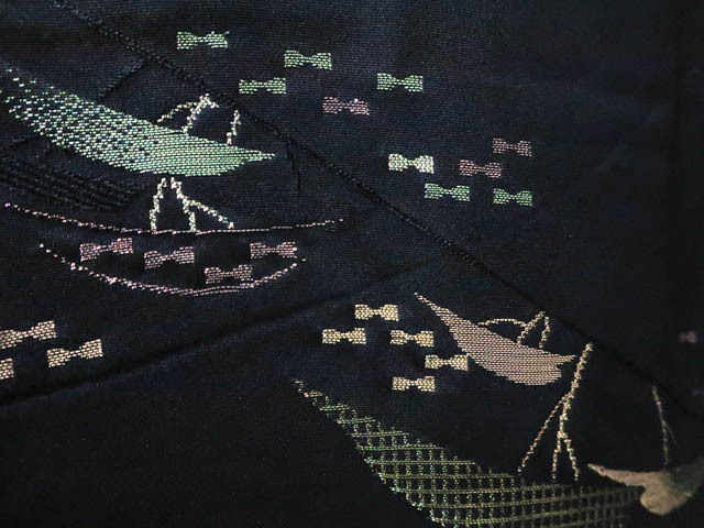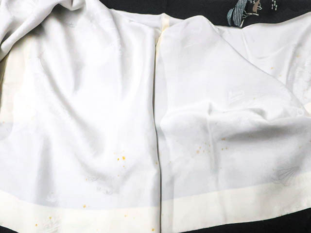 リサイクル商品のため、羽裏にしみ汚れがございますが着用可能なお品です。 地色は 黒です。 1枚目の画像が近いお色かと思われます。 素材は正絹です。 |