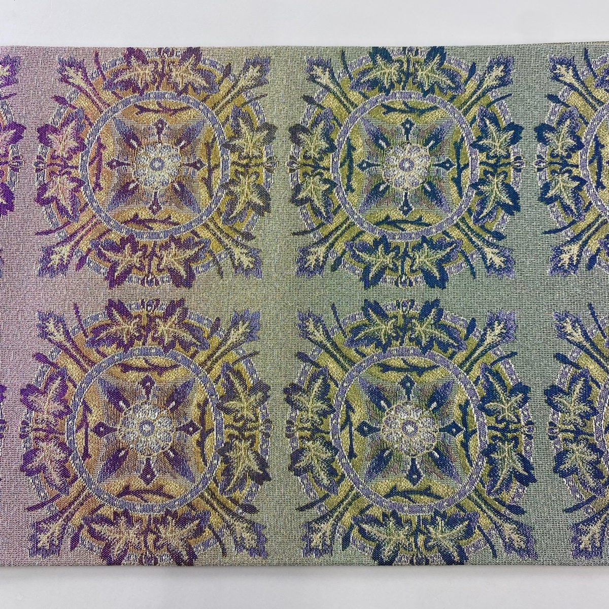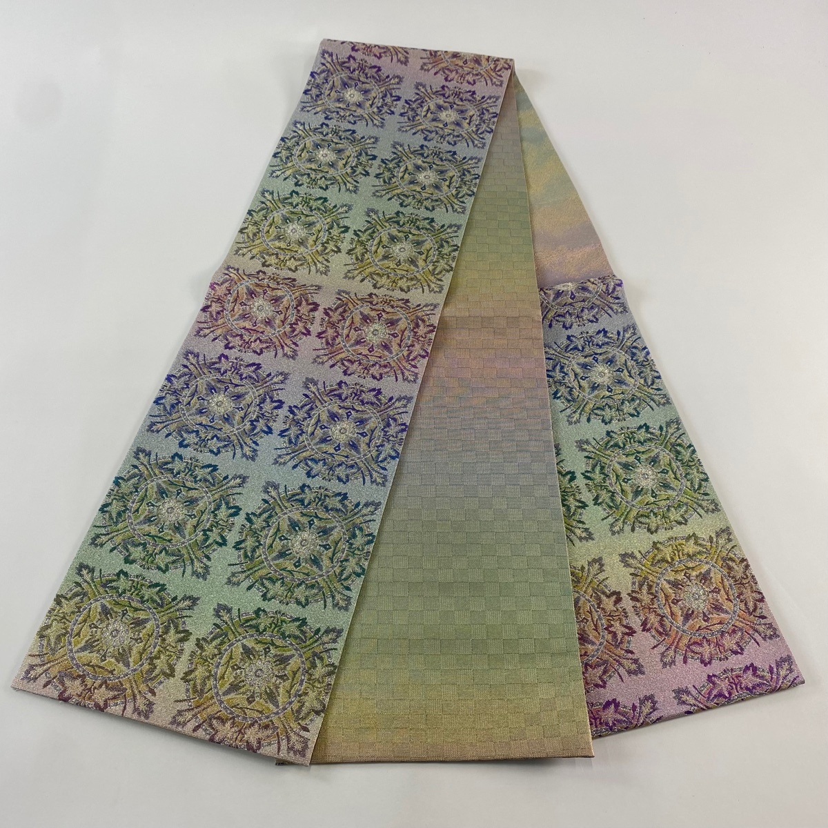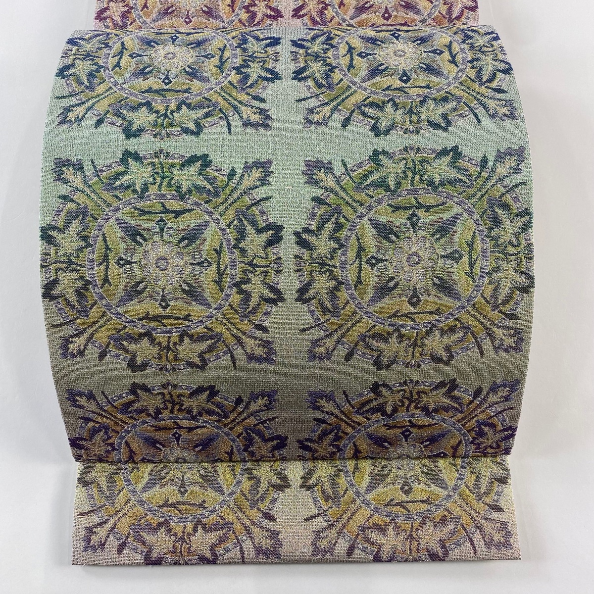 | 袋帯 美品 逸品 佐波理 落款 綴 華文 金銀糸 箔 薄緑 六通 正絹 【中古】 |