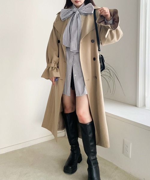 キーワード:トレンチコート コート レディース ロング丈 無地 秋 冬