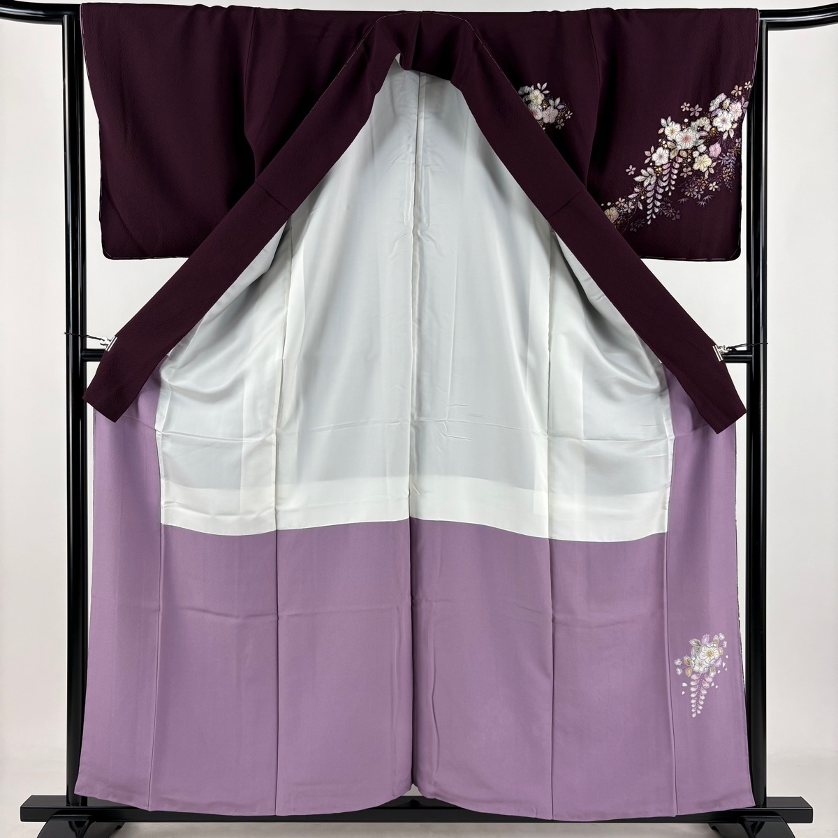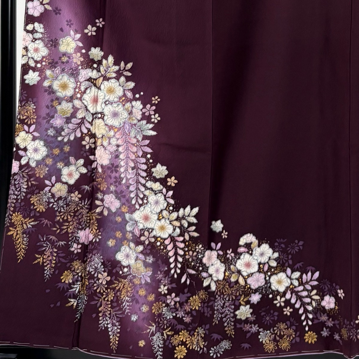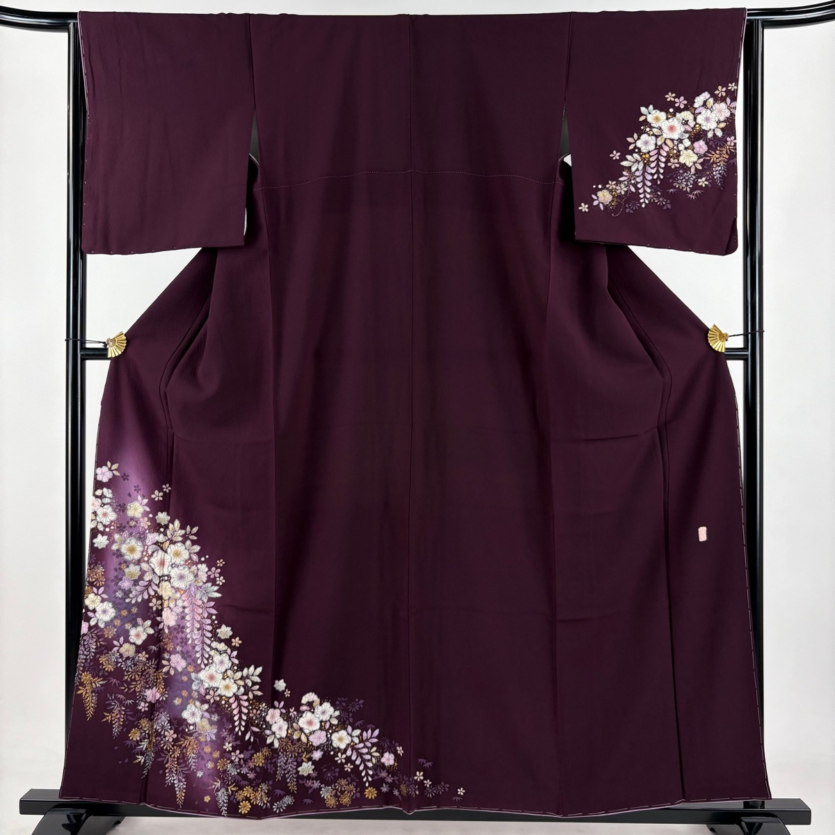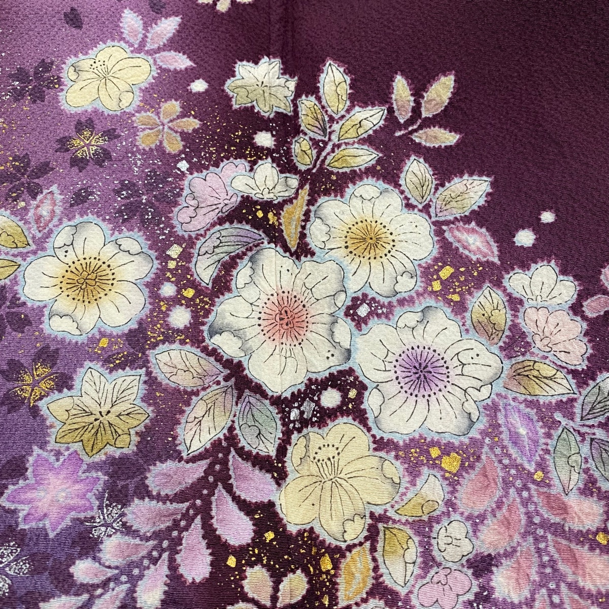 | 付下げ 名品 翠山工房 落款 やまと 辻が花 金銀彩 ぼかし 紫 袷 身丈158 裄丈63.5 S 正絹 【中古】 |