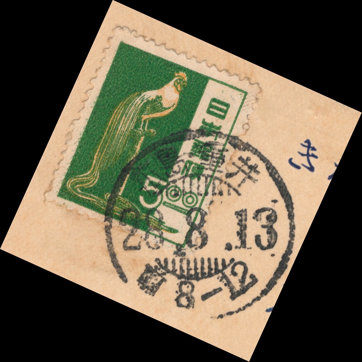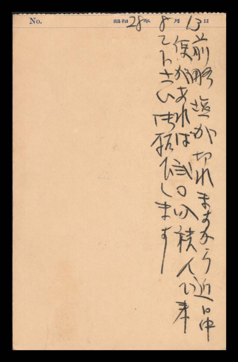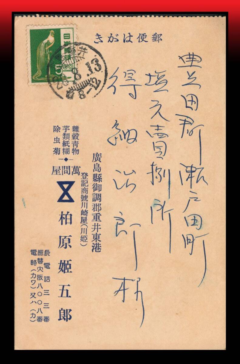 ●離島(広島因島)|尾長鶏5円/私製葉書 櫛型印:広島・重井/28.8.13/前8-12 エンタイア