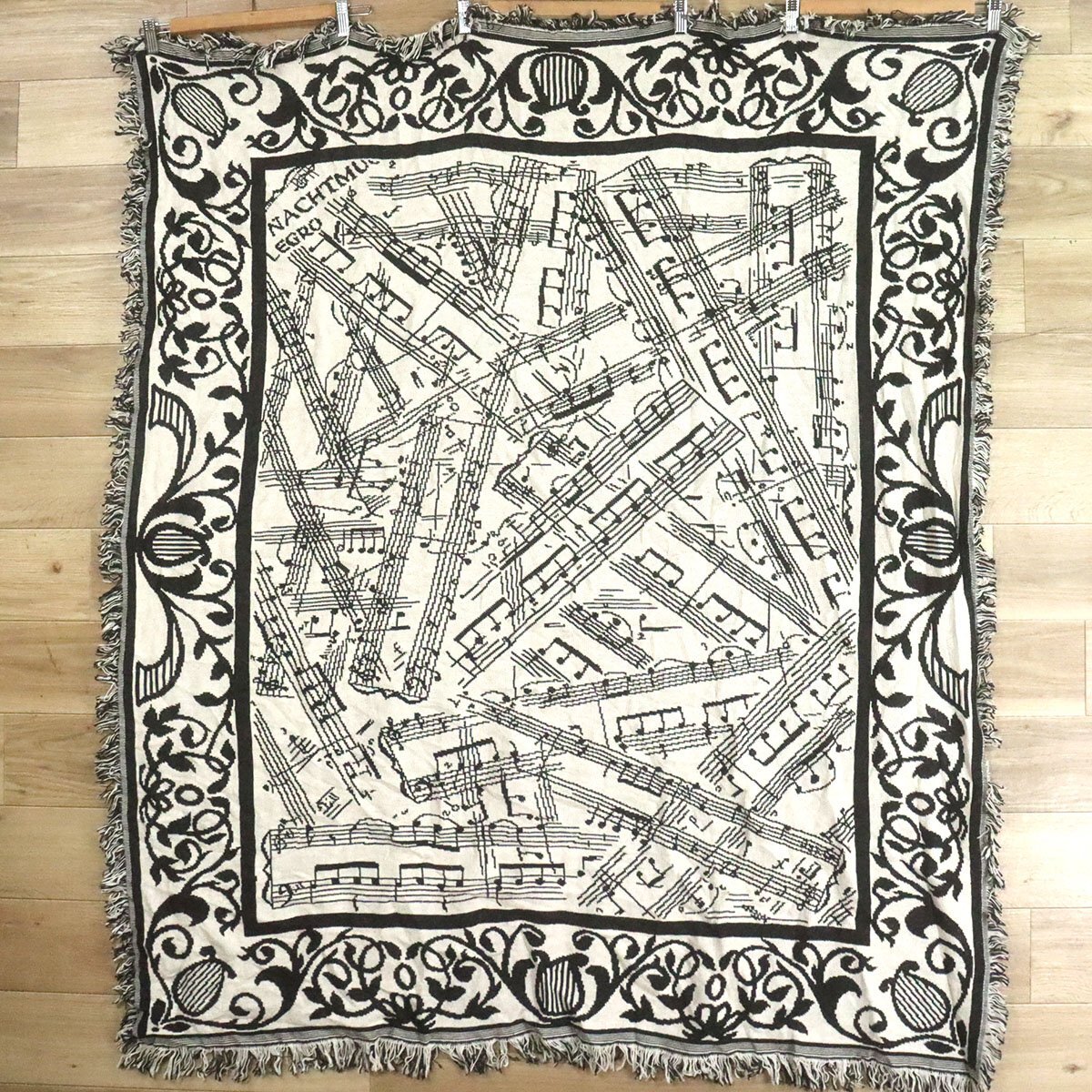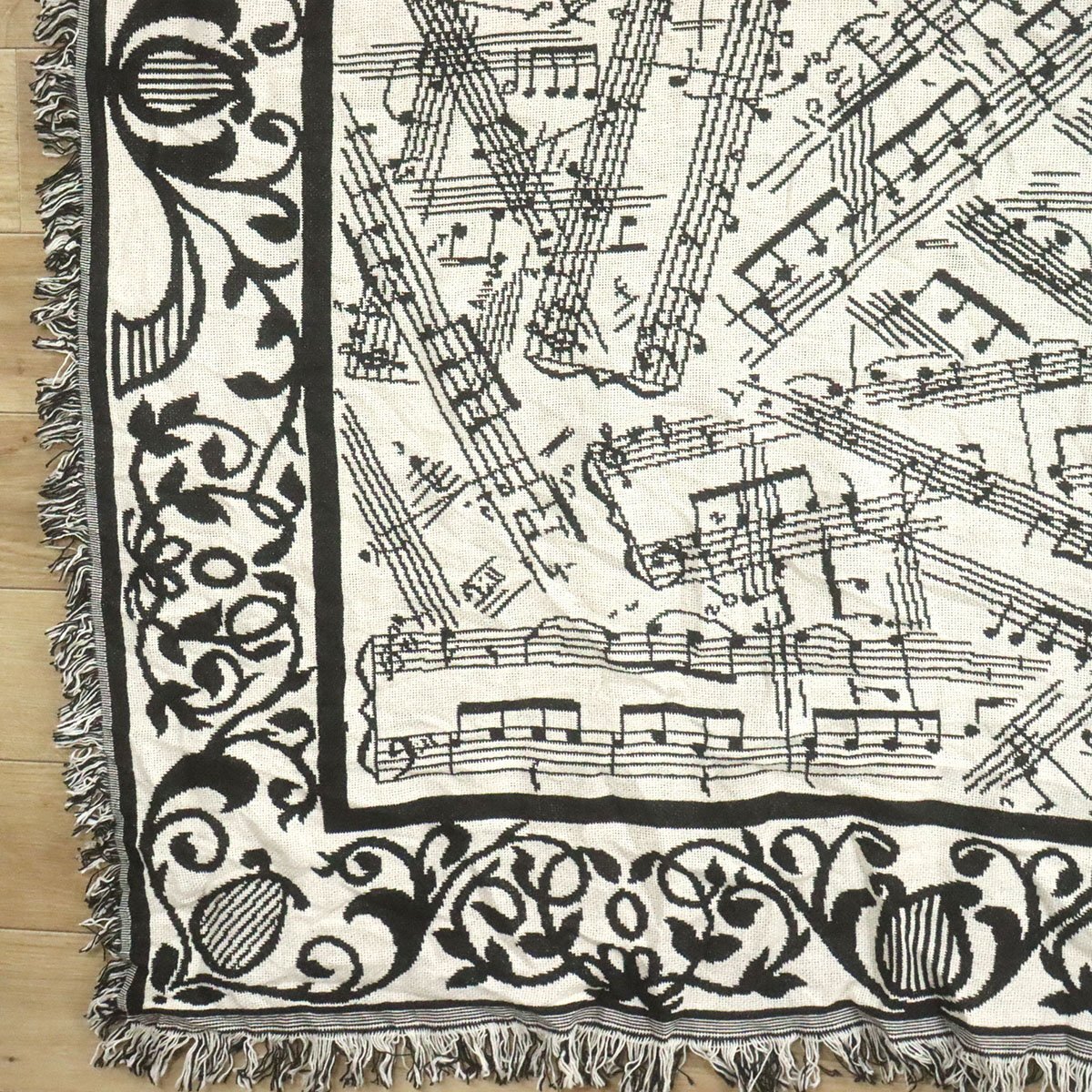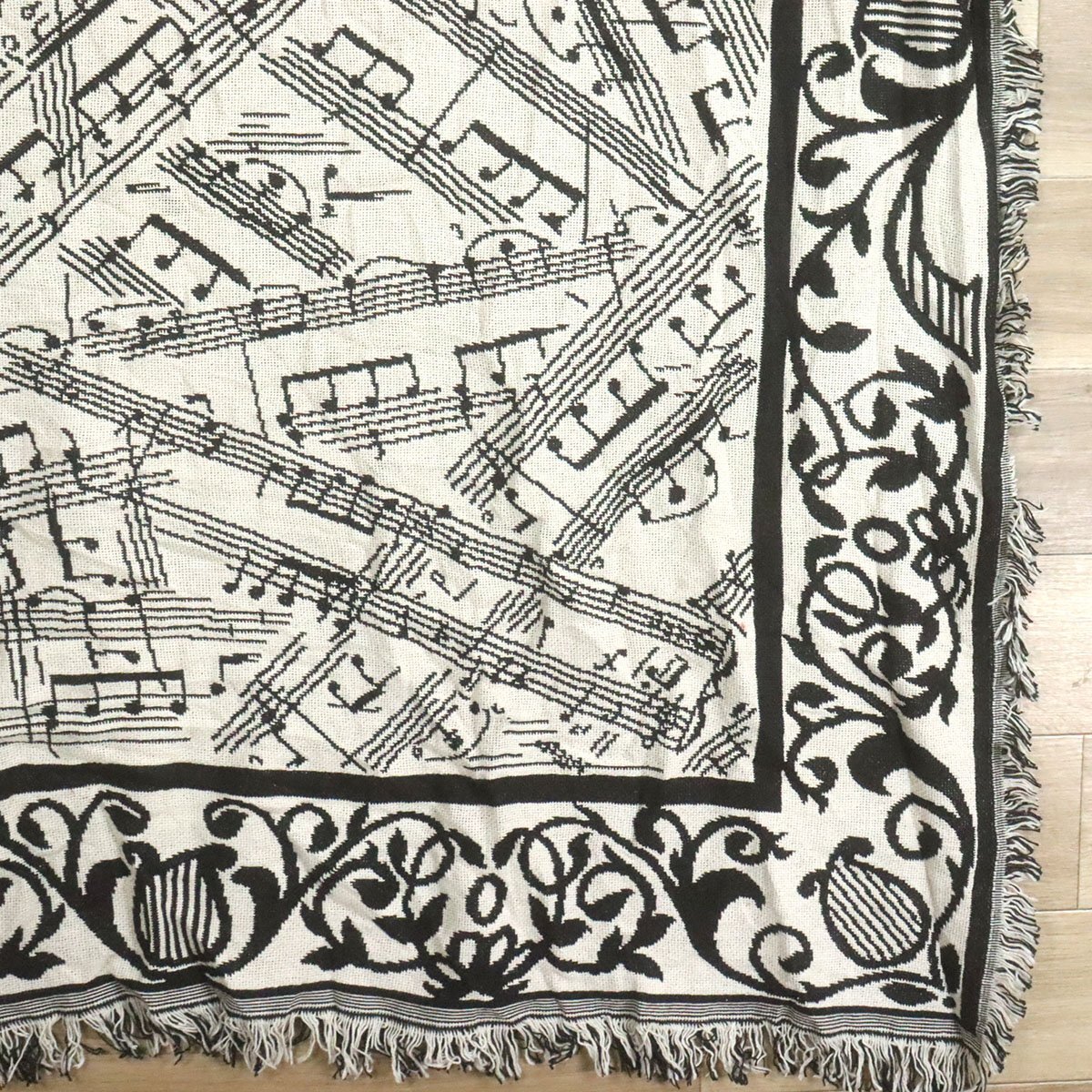 H1-11 O/O9.18-2 USA製 楽譜 五線譜 音符 音楽 モノトーン ラグ マット カーペット ブランケット タペストリー インテリア雑貨