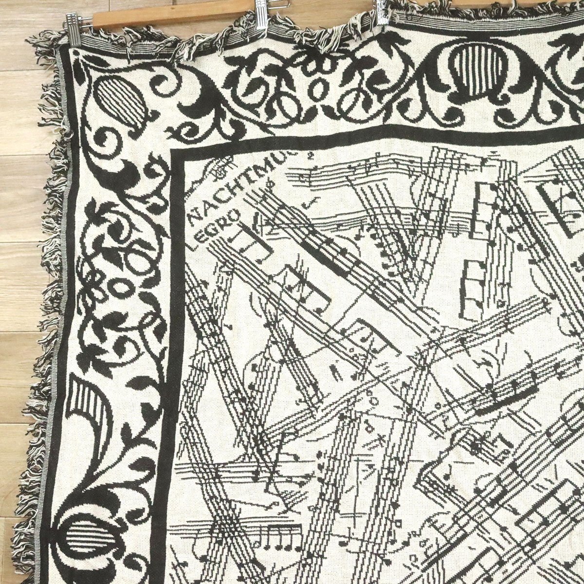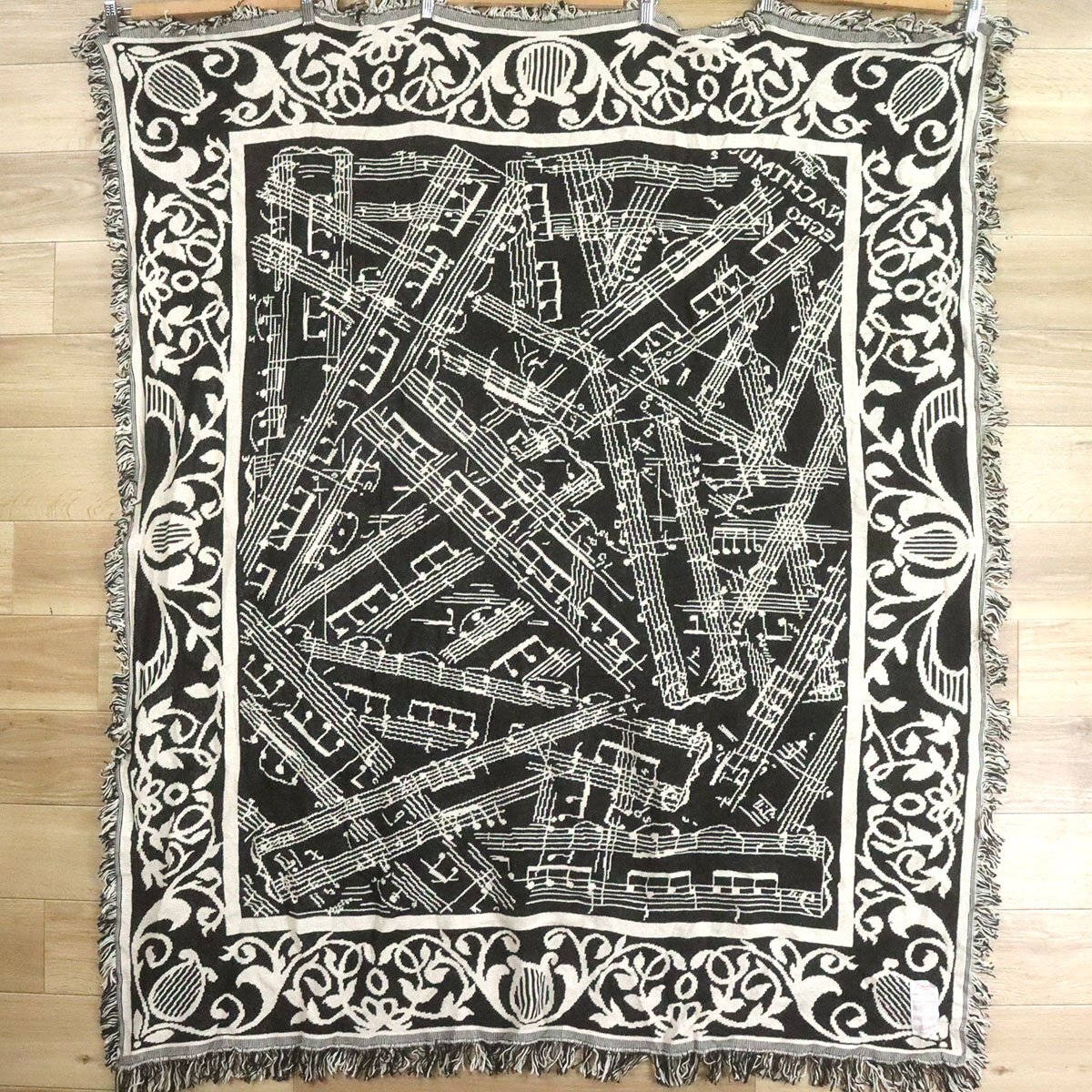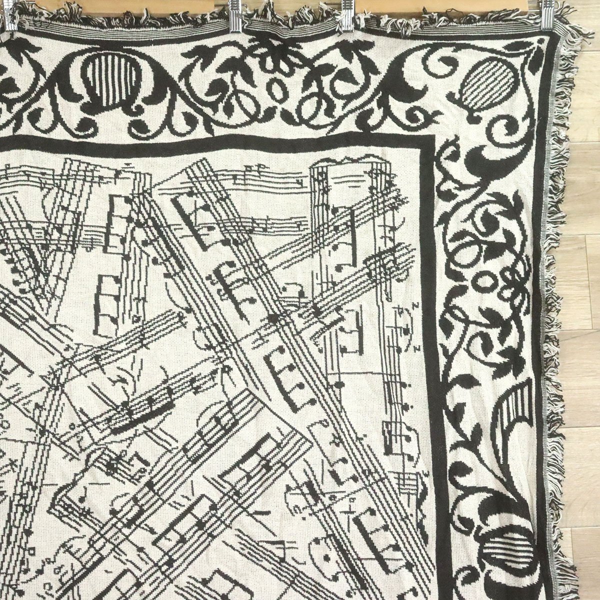 H1-11 O/O9.18-2 USA製 楽譜 五線譜 音符 音楽 モノトーン ラグ マット カーペット ブランケット タペストリー インテリア雑貨