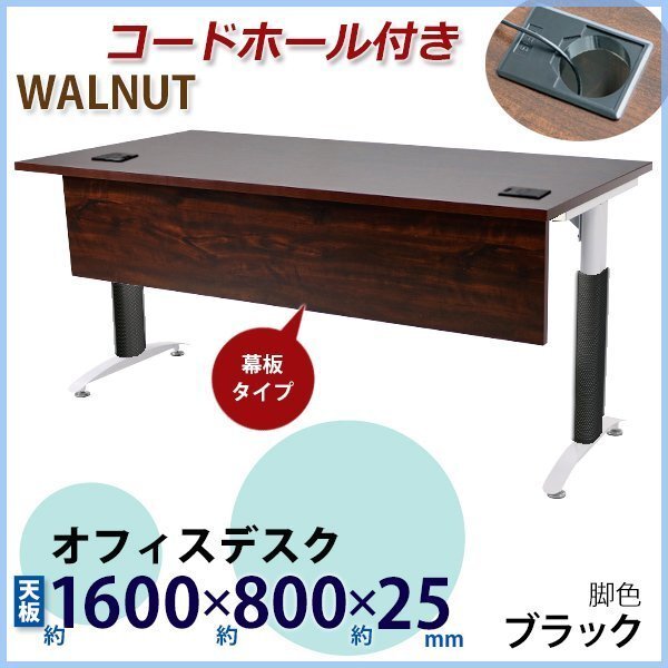 商品名 | 送料無料 オフィスデスク デスク 幕板付 コードホール付 約W160×約D80×約H75.5 約W1600×約D800×約H755 ウォールナット 平机 ワークデスク 事務机 会議テーブル パソコンデスク PCデスク 長机 会議机 事務デスク オフィステーブル 会社 事務所 会議用 配線穴 t016160wahl |