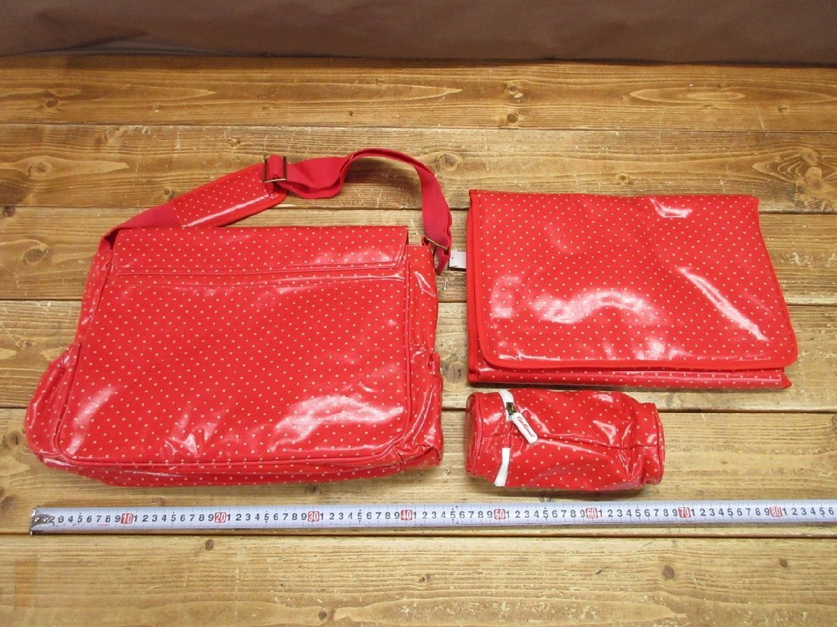【YJ-0630】未使用 新品 Cath Kidston LONDON キャス・キッドソン 花柄 ショルダーバッグ /ポーチ 他 3点 セット赤 レッド【千円市場】