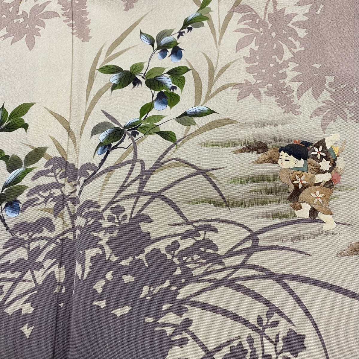 | 付下げ 秀品 落款 蓑虫工芸 田尾笛秋 童 生り物 薄小豆 袷 身丈155 裄丈63 S 正絹 【中古】 |
