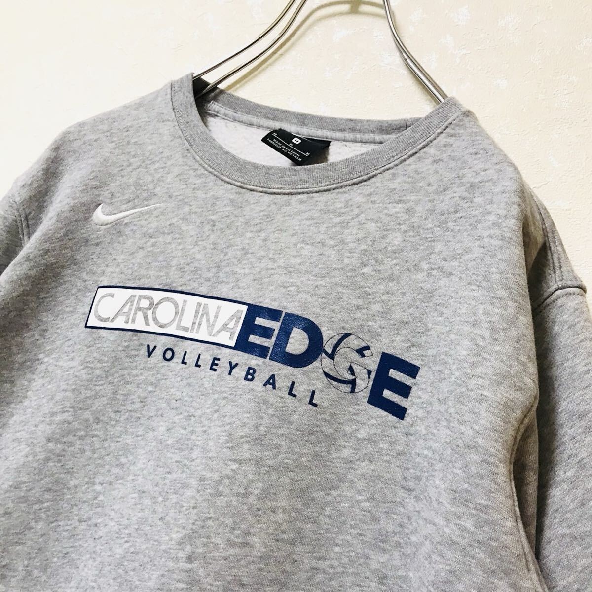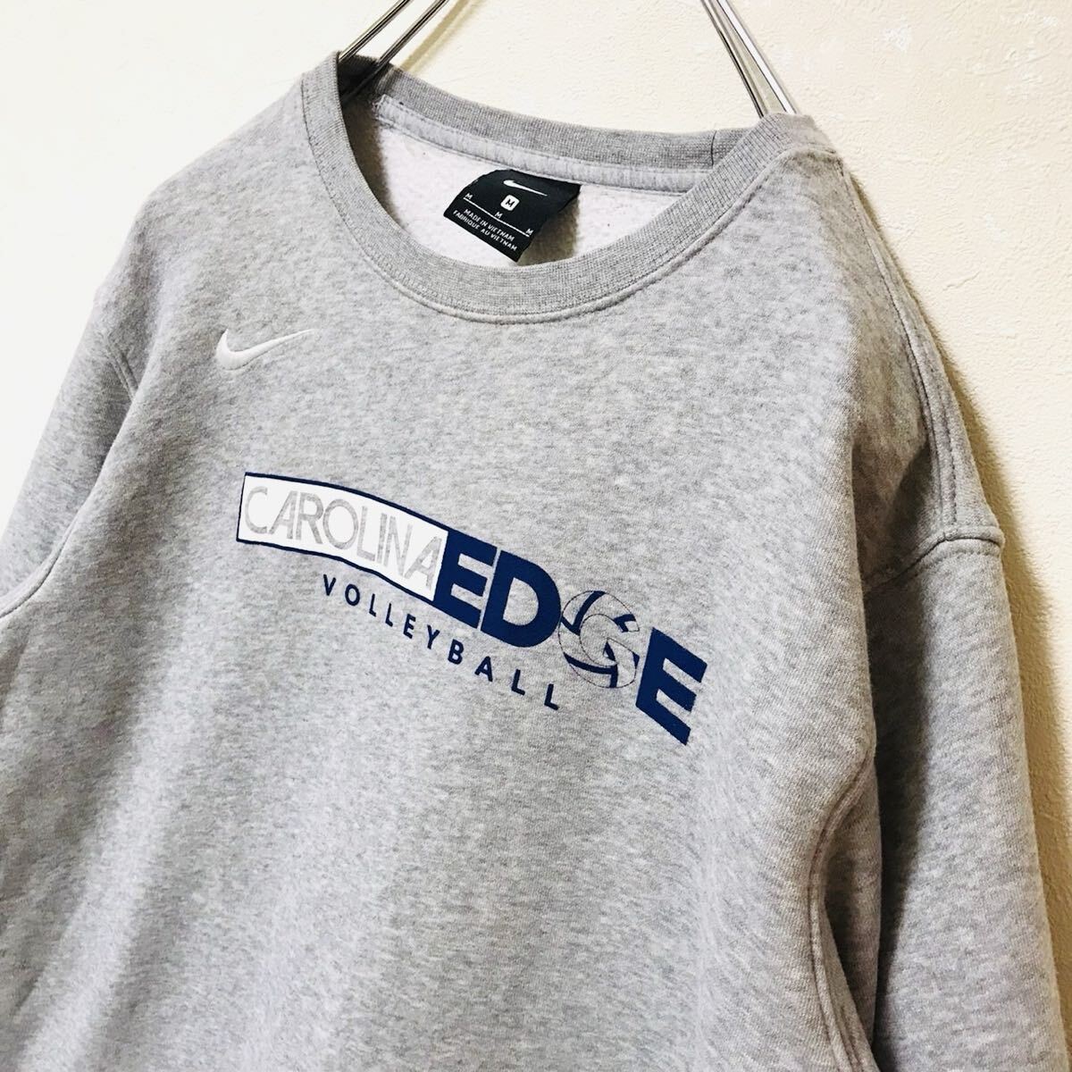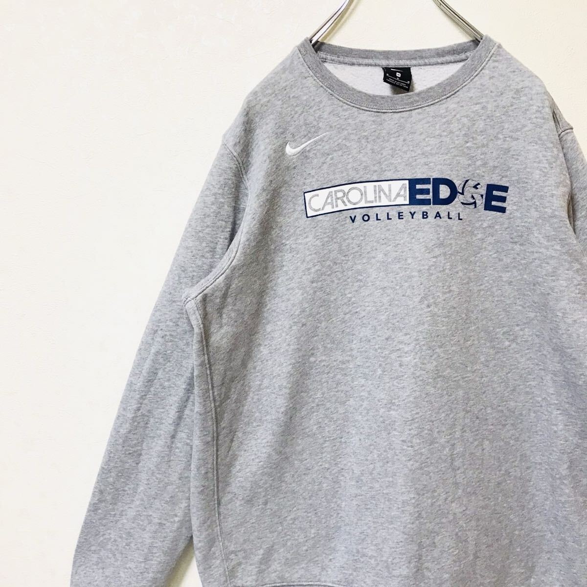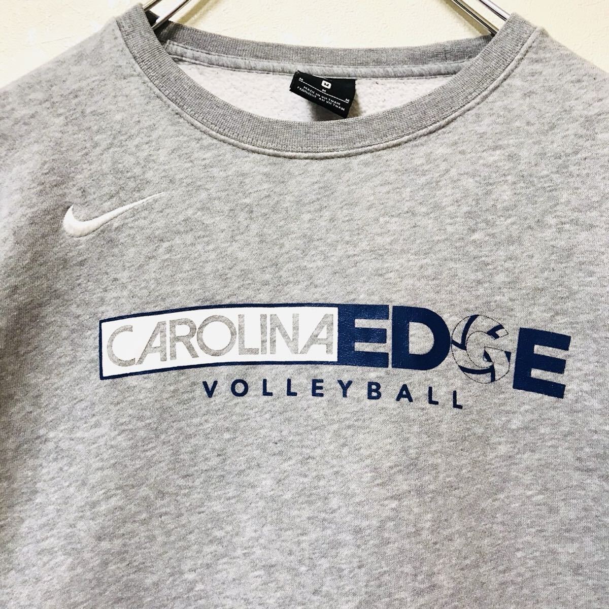 スポーツウェアの代表格として世界的に支持を集めるナイキのクルーネックスウェットです。胸元にはスウッシュロゴと「CAROLINA EDGE VOLLEYBALL」のプリントが入り、チームユニフォームラインらしいスポーティなデザイン。裏起毛仕様で保温性が高く、柔らかなコットン×ポリエステル素材が快適な着心地を実現しています。ややゆとりのあるシルエットで、ストリートやアスレジャースタイルにも取り入れやすい一枚です。90sリバイバルの流れもあり、現行タグながら人気の高いモデルです。
