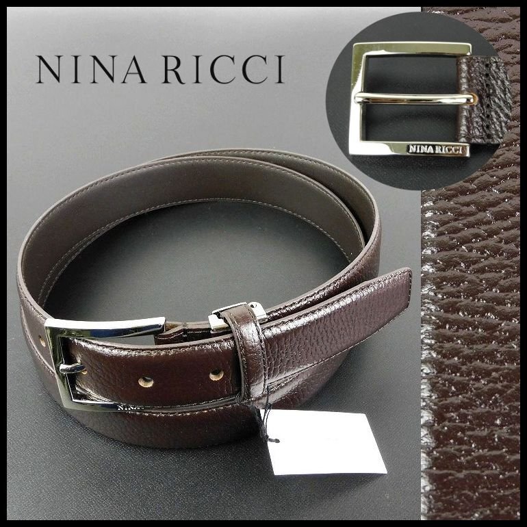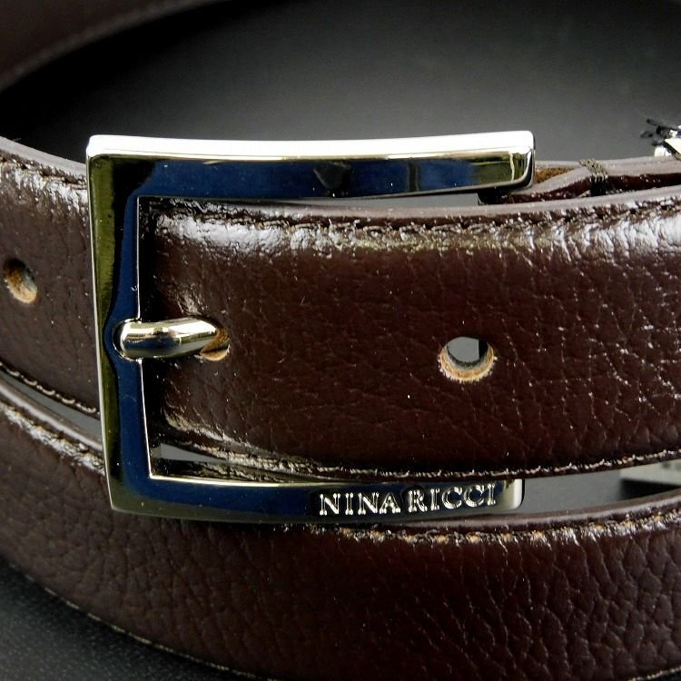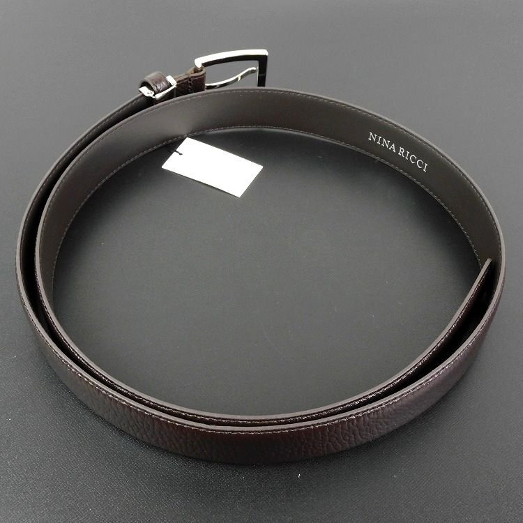 B2458 新品 正規品★ニナリッチ NINA RICCI★濃茶 牛革レザー ベルト カット調節可能 メンズ 紳士