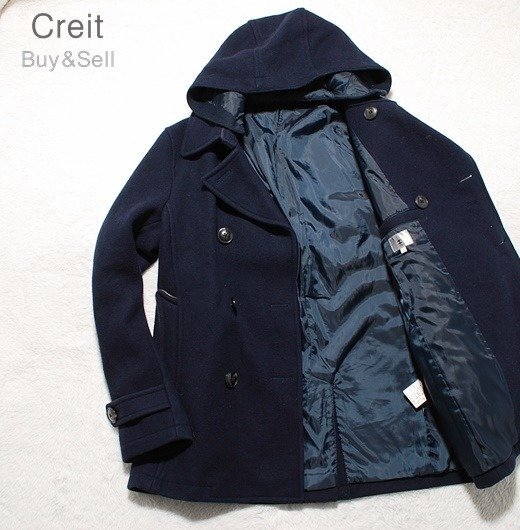 D21■TKタケオキクチ★サイズ3クリーニング済フード取外ウールジャケットブルゾンPコート