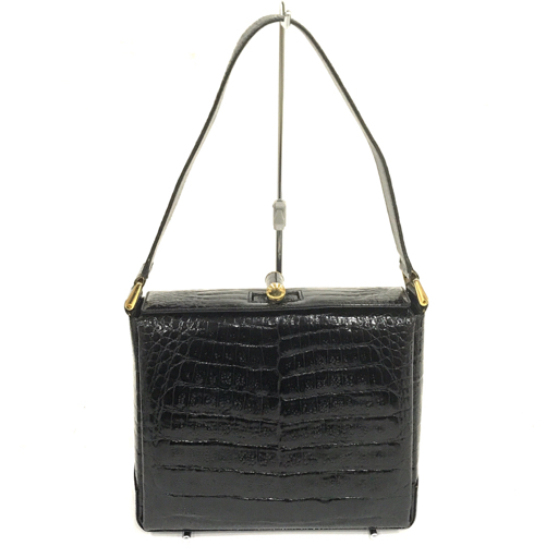 ニエルアルジェンティ クロコ型押し レザー セミショルダーバッグ 肩掛けバッグ 鞄 レディース 黒系 NIERI ARGENTI |