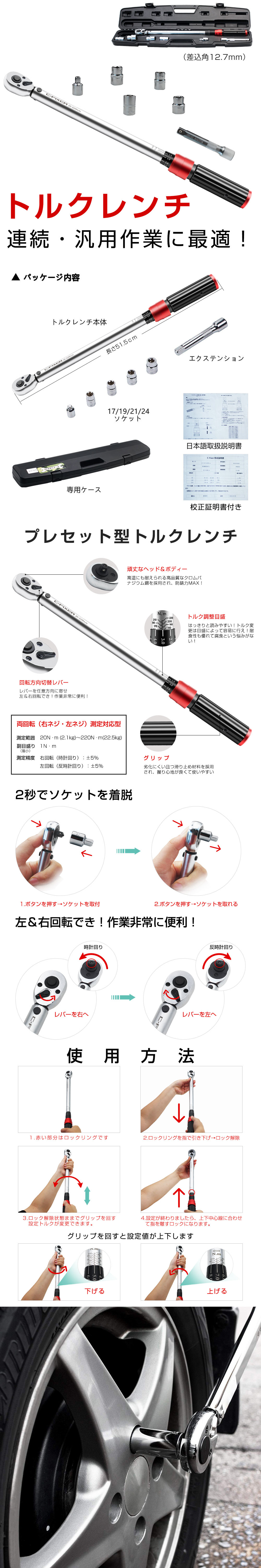 ▲【商品内容】トルクレンチ本体、アルミホイール対応17/19/21/24mmソケット 差込角:12.7mm 1/2インチ エクステンションバー