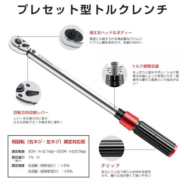 ▲【品質保証と使いやすい】耐久性の抜群である【本体】カーボンスチール?スチール / 【ソケット?エクステンションバー】クロームバナジウムを採用し、防錆で十分に丈夫である。ハンドルは防錆および滑り止めのためのナーリングなので、握り心地が良くて、使いやすいです。【目盛】はっきりと読みやすい。目盛によってトルク変更は容易に行え!
