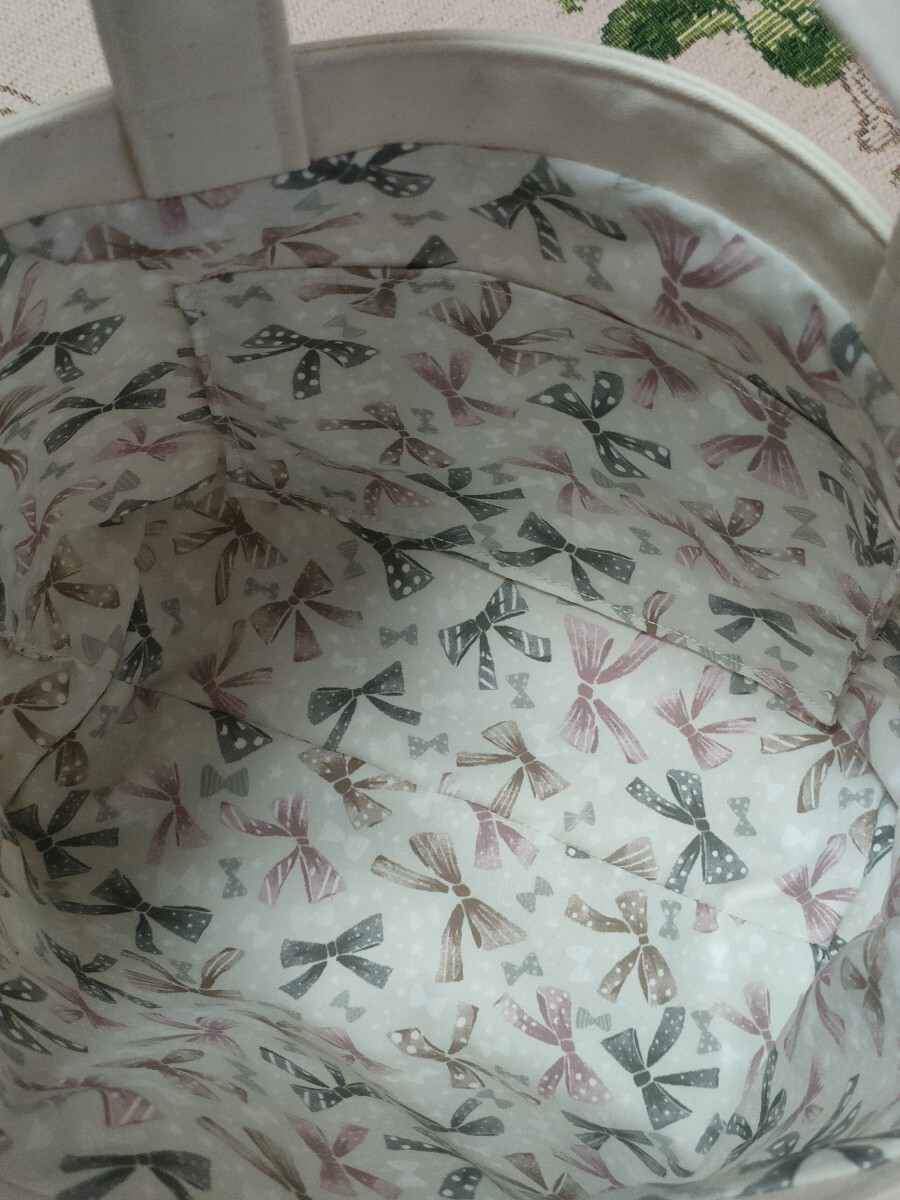 裏地:ベージュ系リボン柄