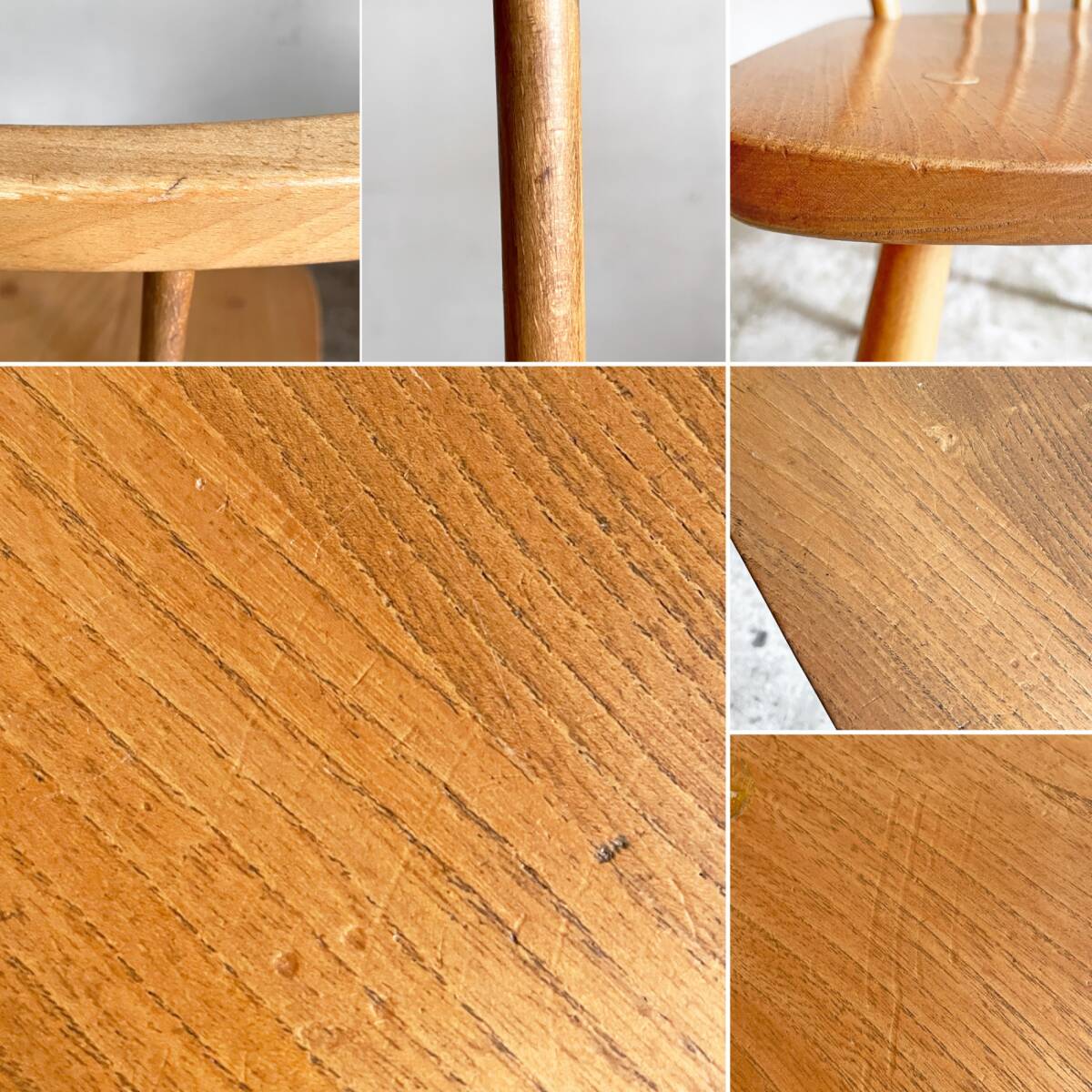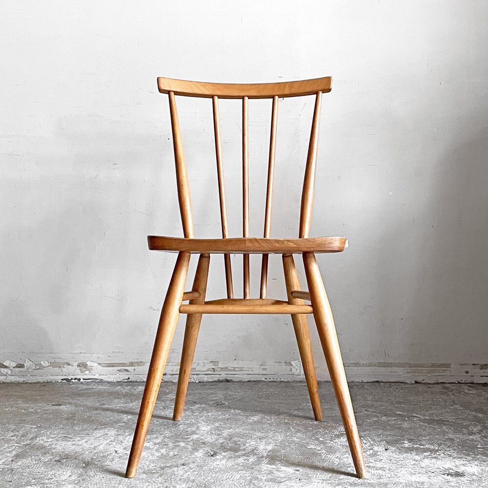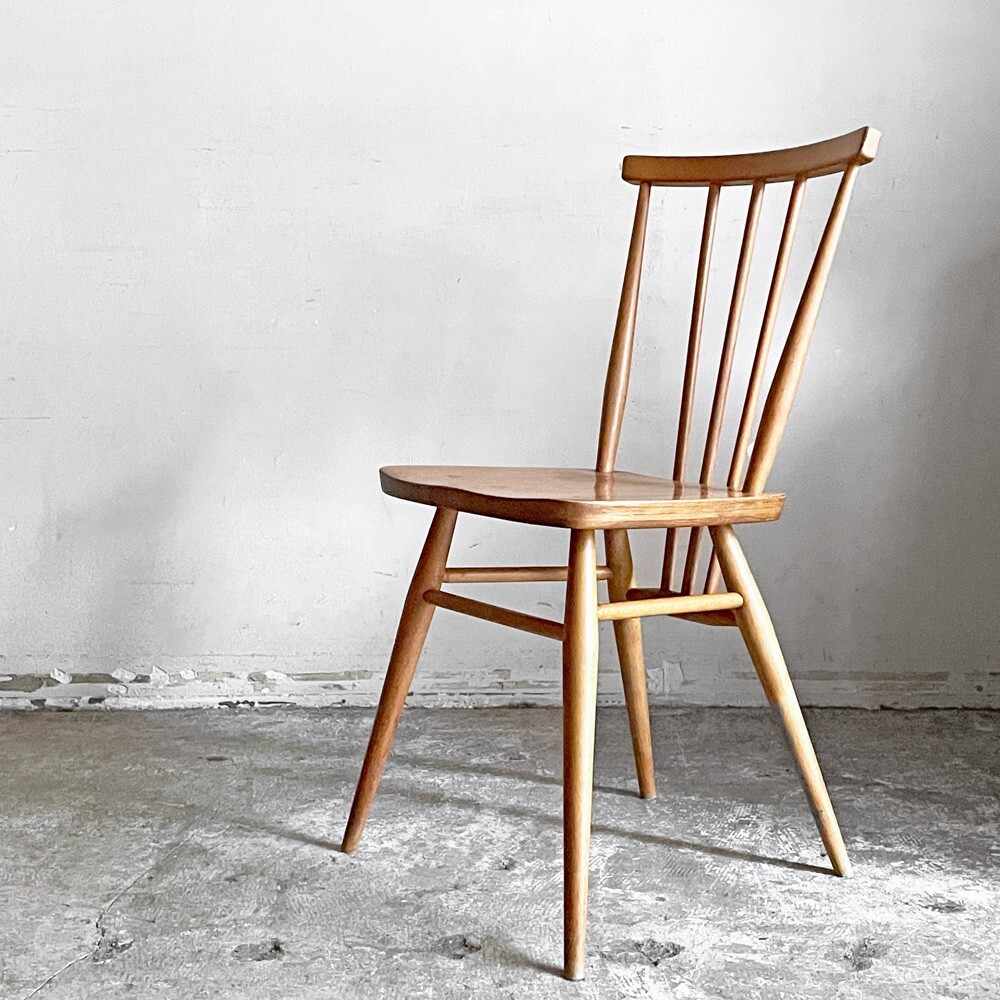 コメント | 1920年にイギリスで創業した老舗家具メーカー、“アーコール ERCOL”社よりビンテージのスティックバックチェアです。 素朴でありながら洗練されたデザインで、本国イギリスのみならず世界中で愛されるアーコールの椅子。 スティックバックは、背もたれから座面下にある貫(ぬき)へと続くスポークのデザインが特長のウィンザーチェアです。 また見た目の可愛らしさは言わずもがな、コンパクトかつ比較的軽量で扱いやすい点も魅力といえます。 さらに使い込むごとに味わいが増すエルム材の優しい色合いや風合いはビンテージのアーコールチェアならでは。 最も後ろ姿が美しいといわれる心地良いシンプルデザインの1脚。安定感のある座り心地で、ゆったりとした寛ぎの食卓を叶えてくれます。 ※当ショップは、主にリサイクル品を取り扱っております。基本的にUSED品である事をご理解頂き、ご入札をご検討下さいませ。 |