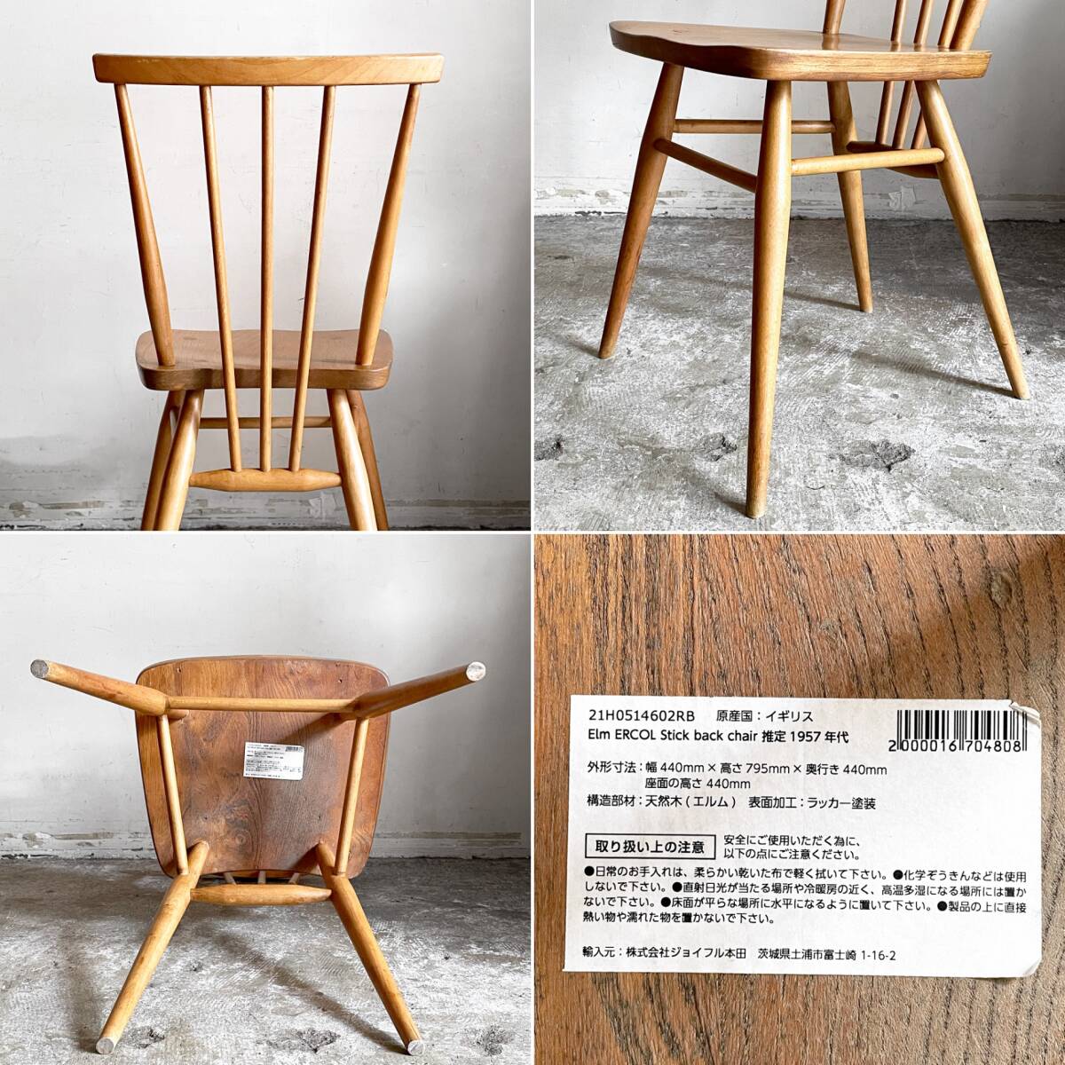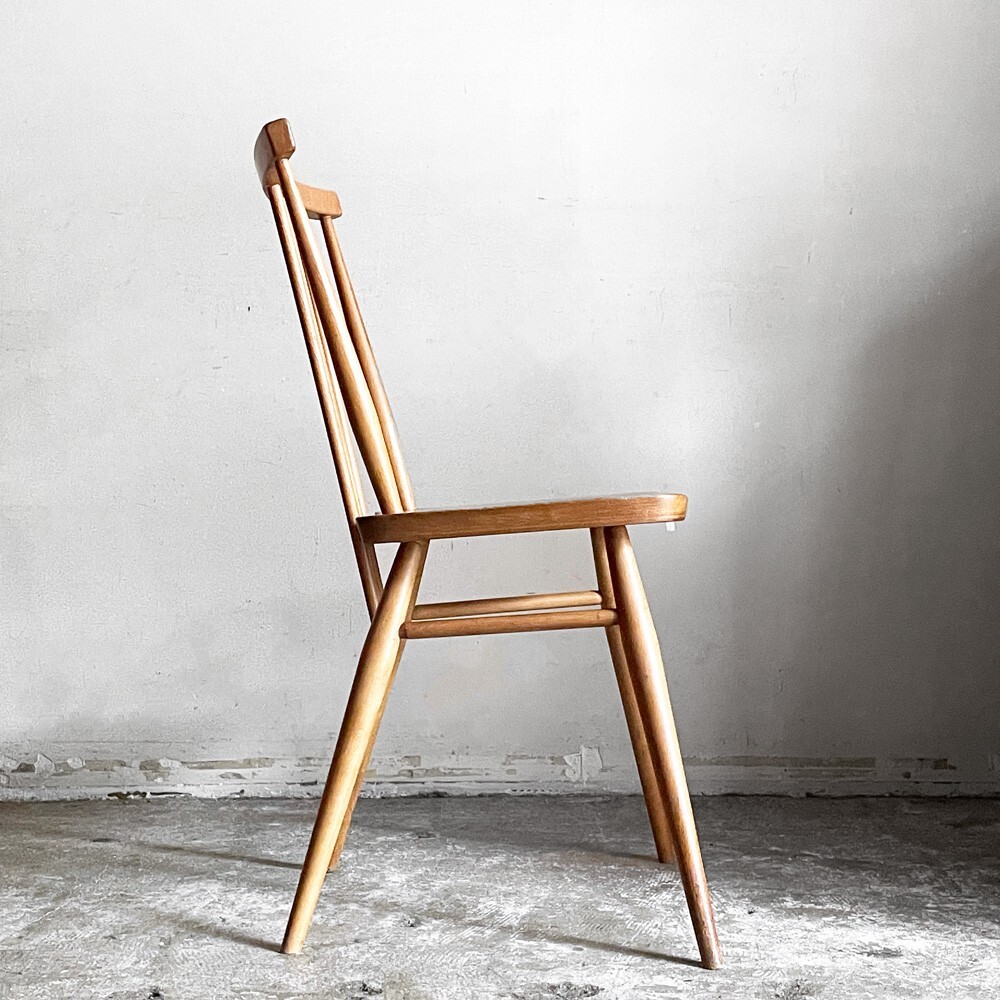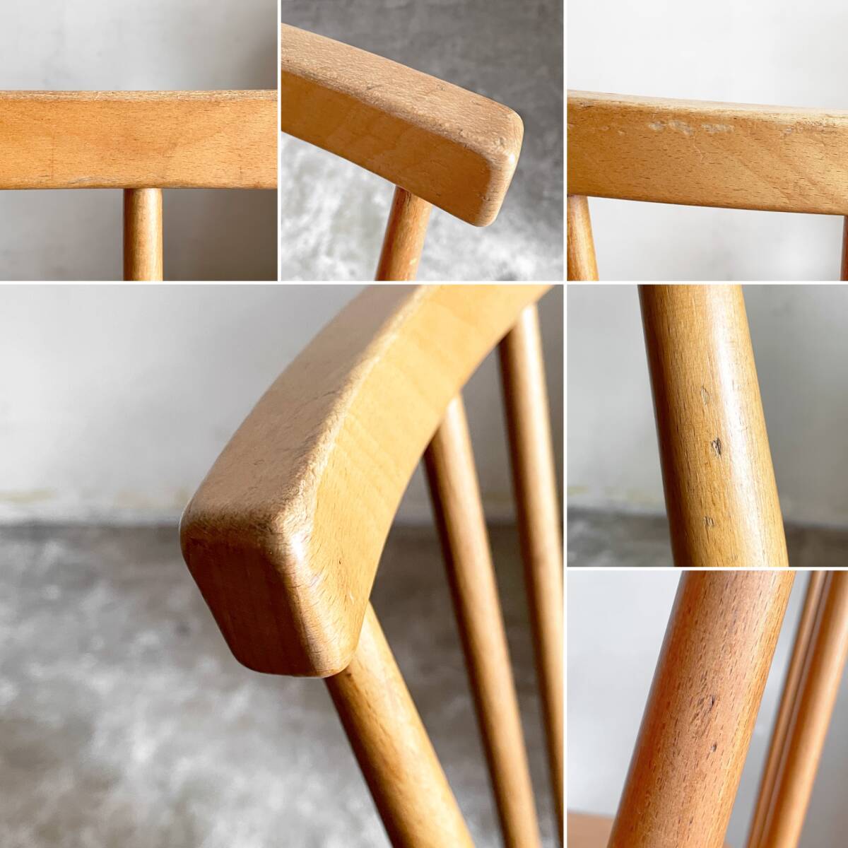 コメント | 1920年にイギリスで創業した老舗家具メーカー、“アーコール ERCOL”社よりビンテージのスティックバックチェアです。 素朴でありながら洗練されたデザインで、本国イギリスのみならず世界中で愛されるアーコールの椅子。 スティックバックは、背もたれから座面下にある貫(ぬき)へと続くスポークのデザインが特長のウィンザーチェアです。 また見た目の可愛らしさは言わずもがな、コンパクトかつ比較的軽量で扱いやすい点も魅力といえます。 さらに使い込むごとに味わいが増すエルム材の優しい色合いや風合いはビンテージのアーコールチェアならでは。 最も後ろ姿が美しいといわれる心地良いシンプルデザインの1脚。安定感のある座り心地で、ゆったりとした寛ぎの食卓を叶えてくれます。 ※当ショップは、主にリサイクル品を取り扱っております。基本的にUSED品である事をご理解頂き、ご入札をご検討下さいませ。 |