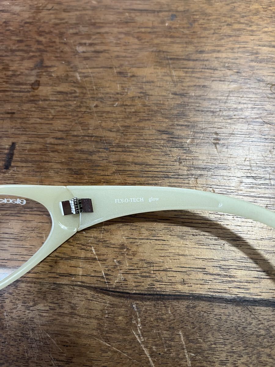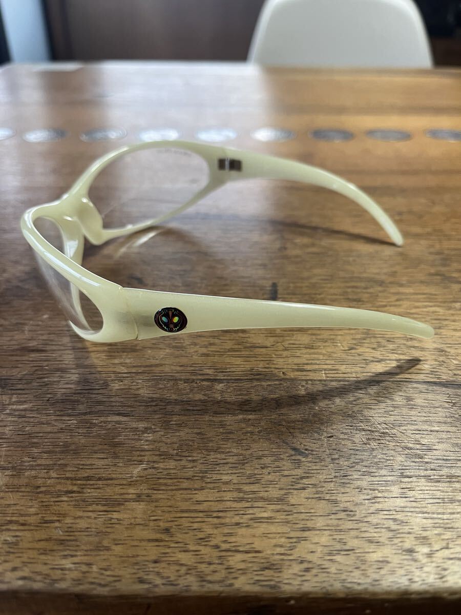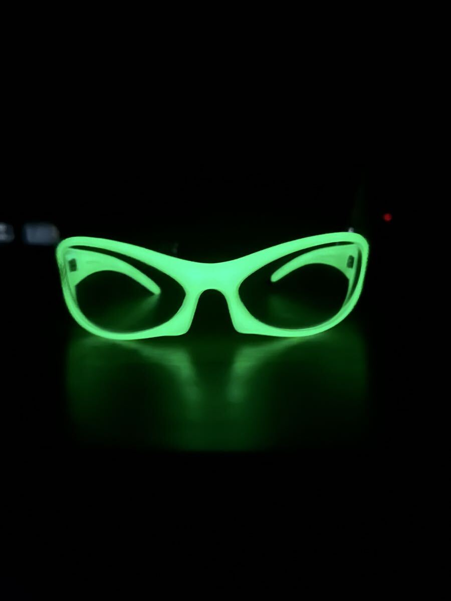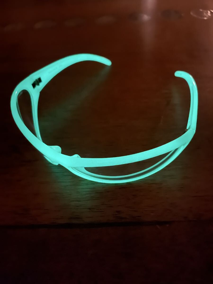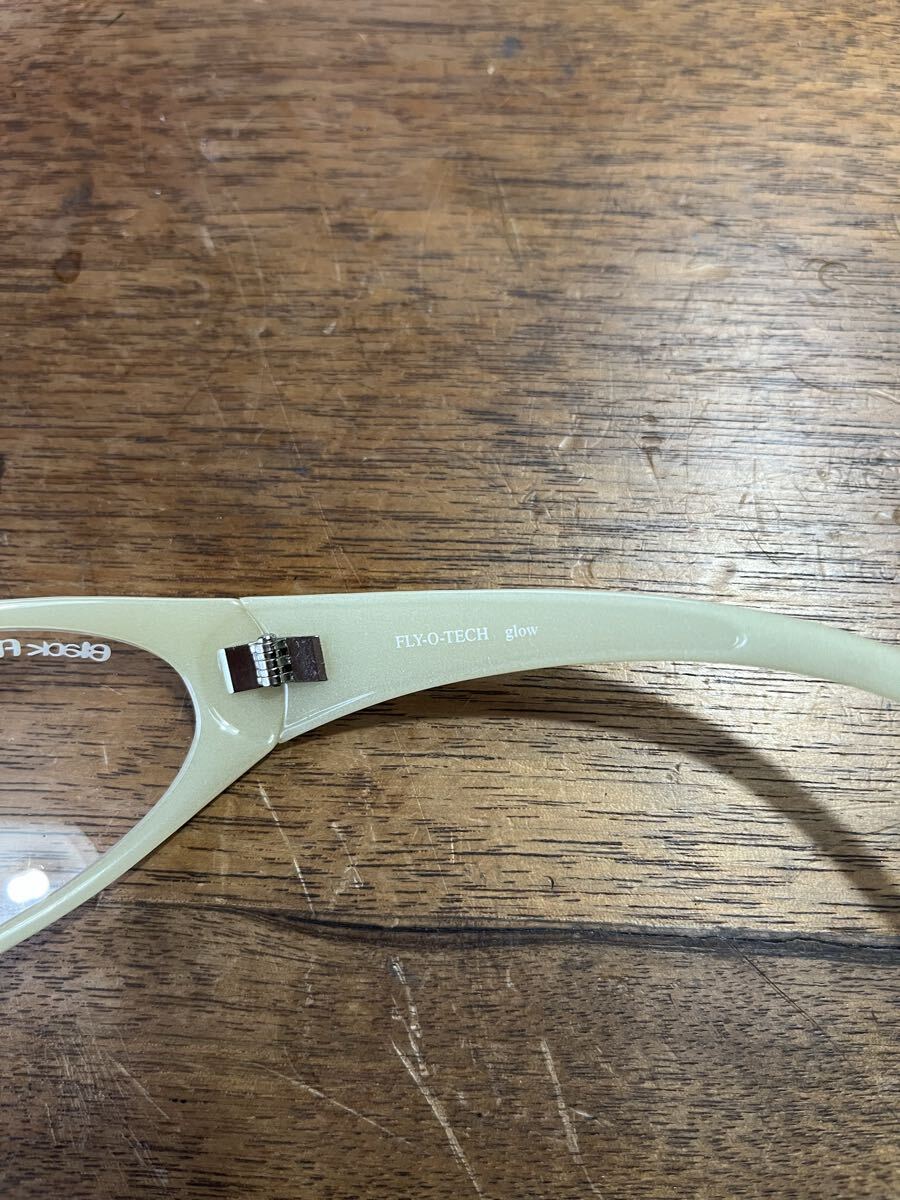 blackflysの10周年記念モデルとして発売されたfly-o-techです。その中でも蓄光するフレームを使い、暗闇で光を放つクールなギミックのGLOWはレアモデルではないでしょうか。写真は出品時に撮影したので今でもしっかり蓄光します。