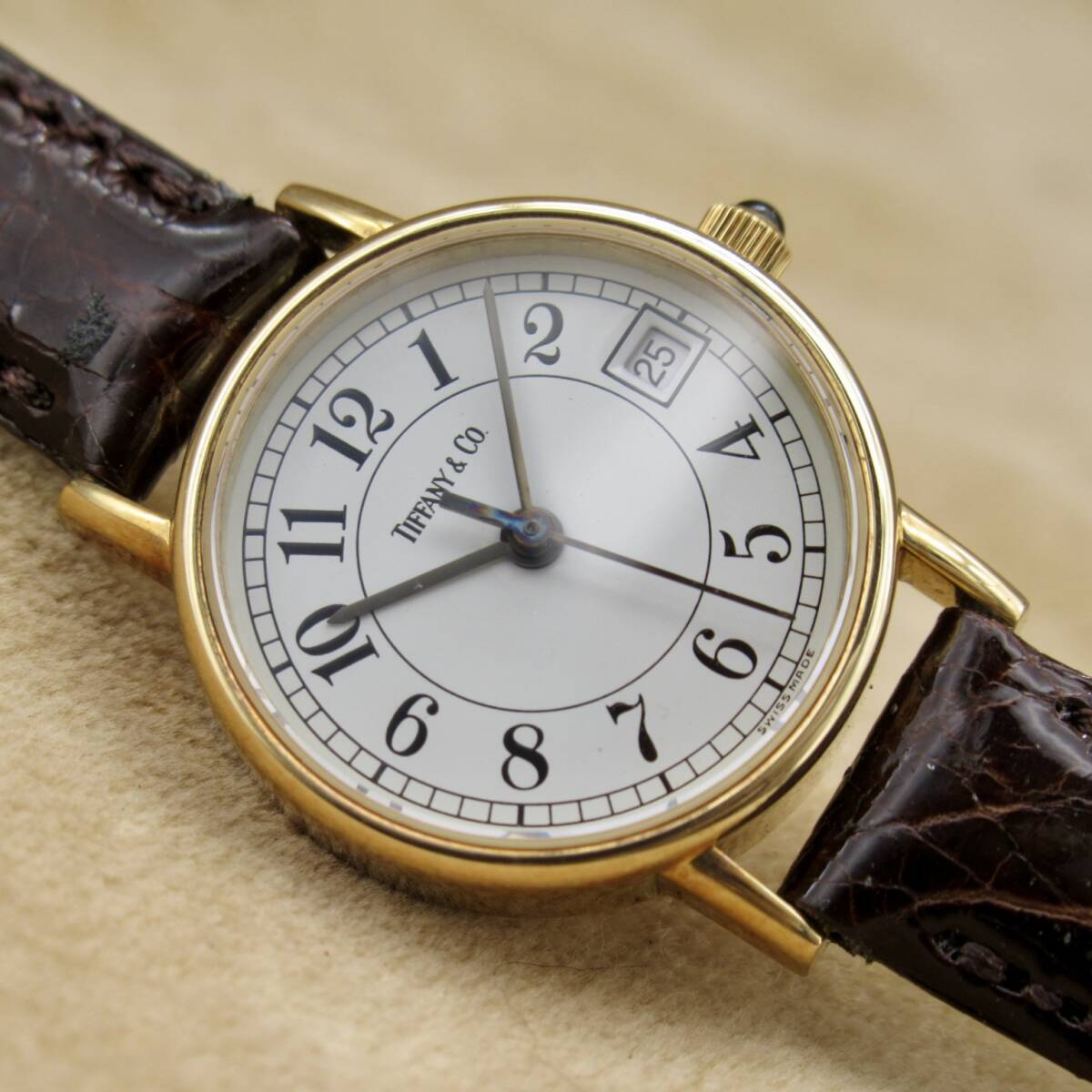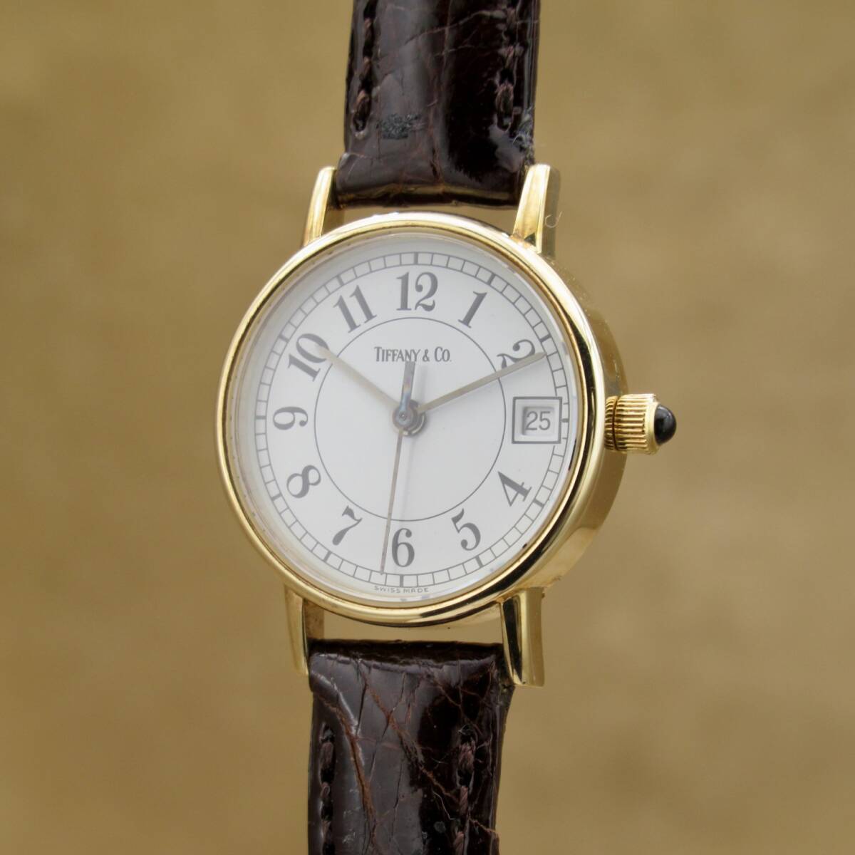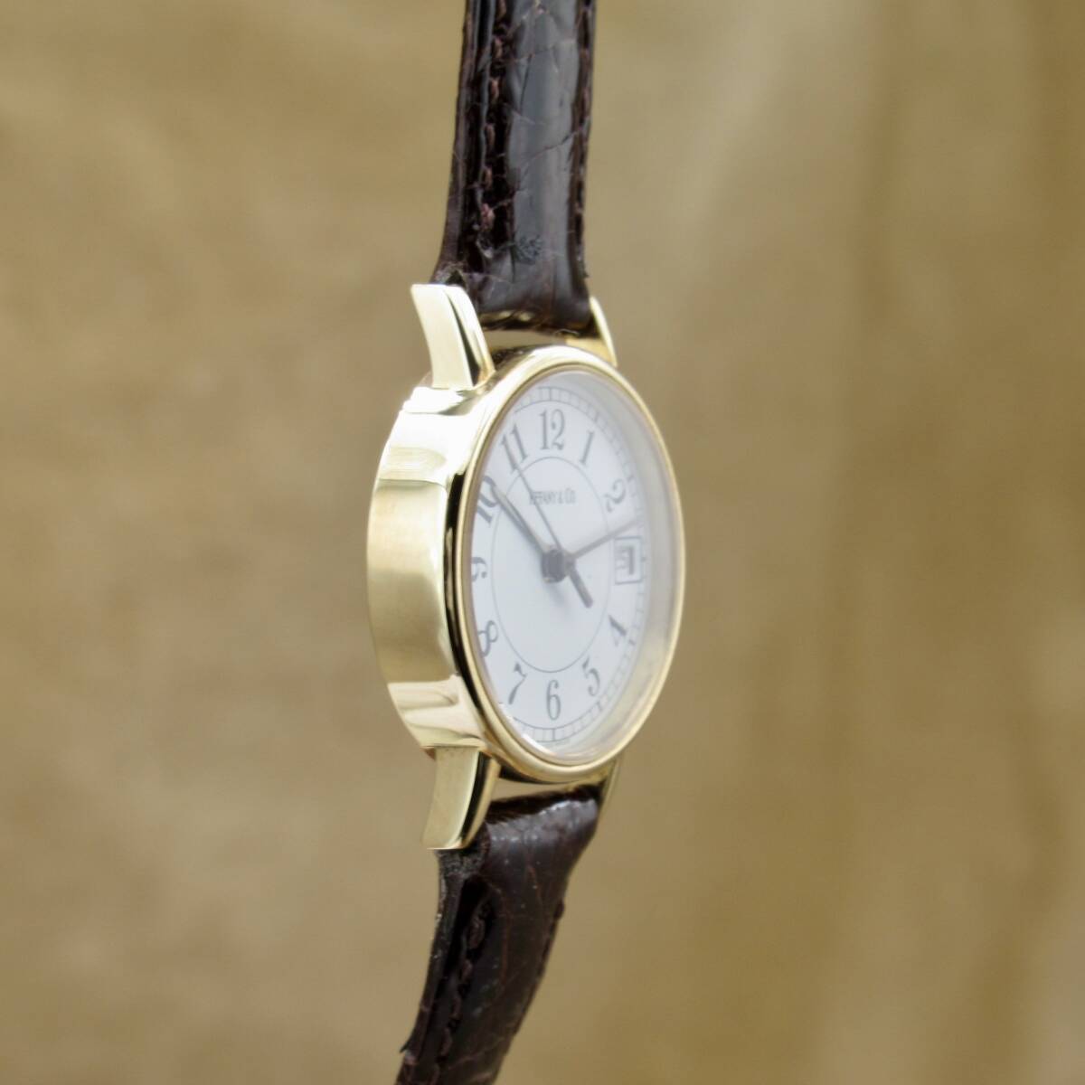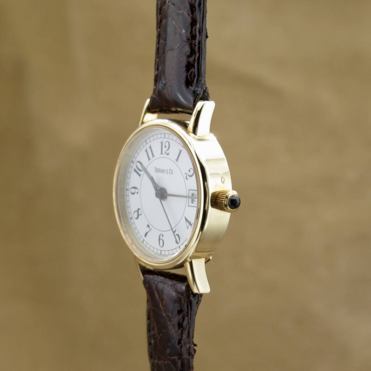 Tiffany&Co. Classic ティファニー クラシック 23256 18K ゴールド レディース 白文字盤 アラビアインデックス レザー ヴィンテージ