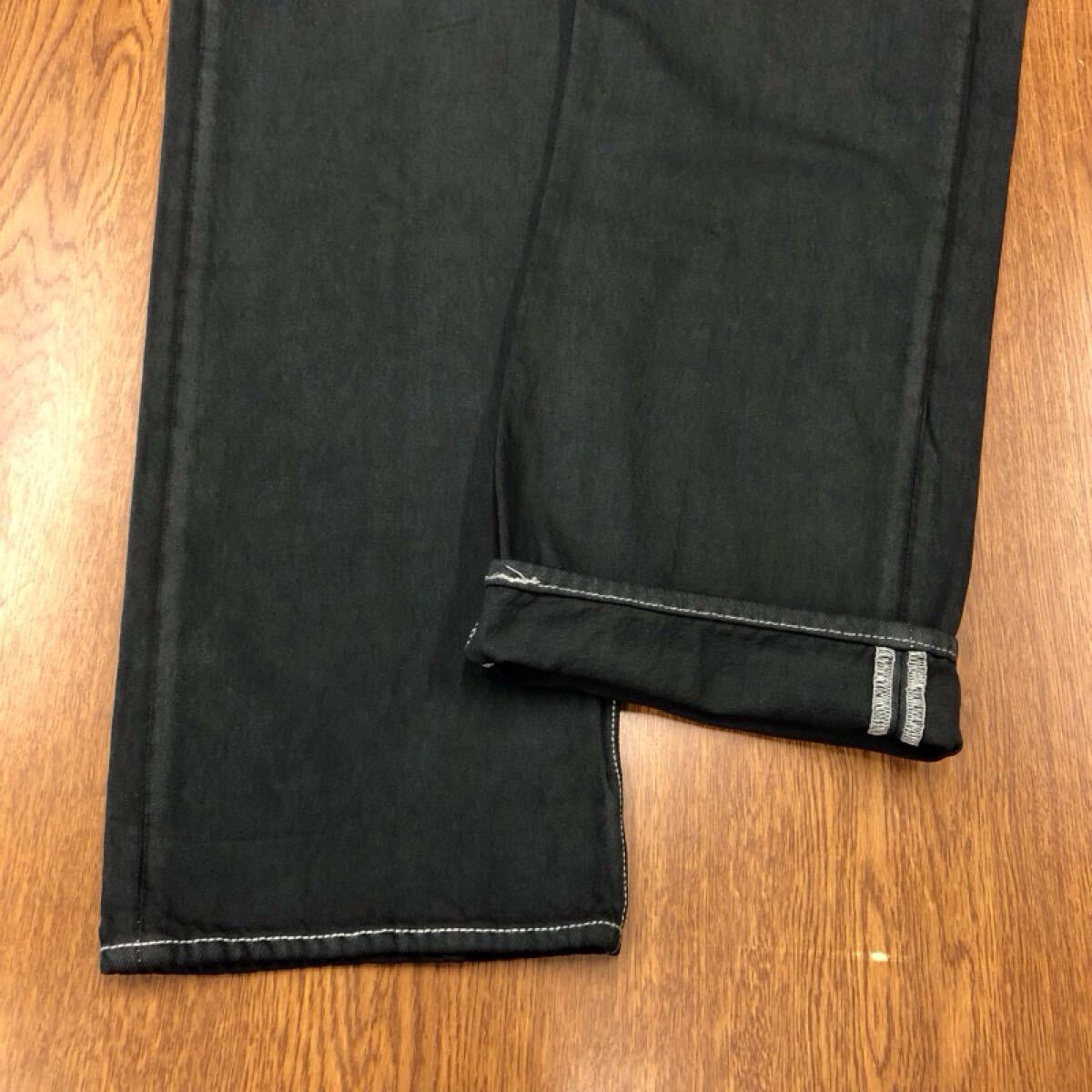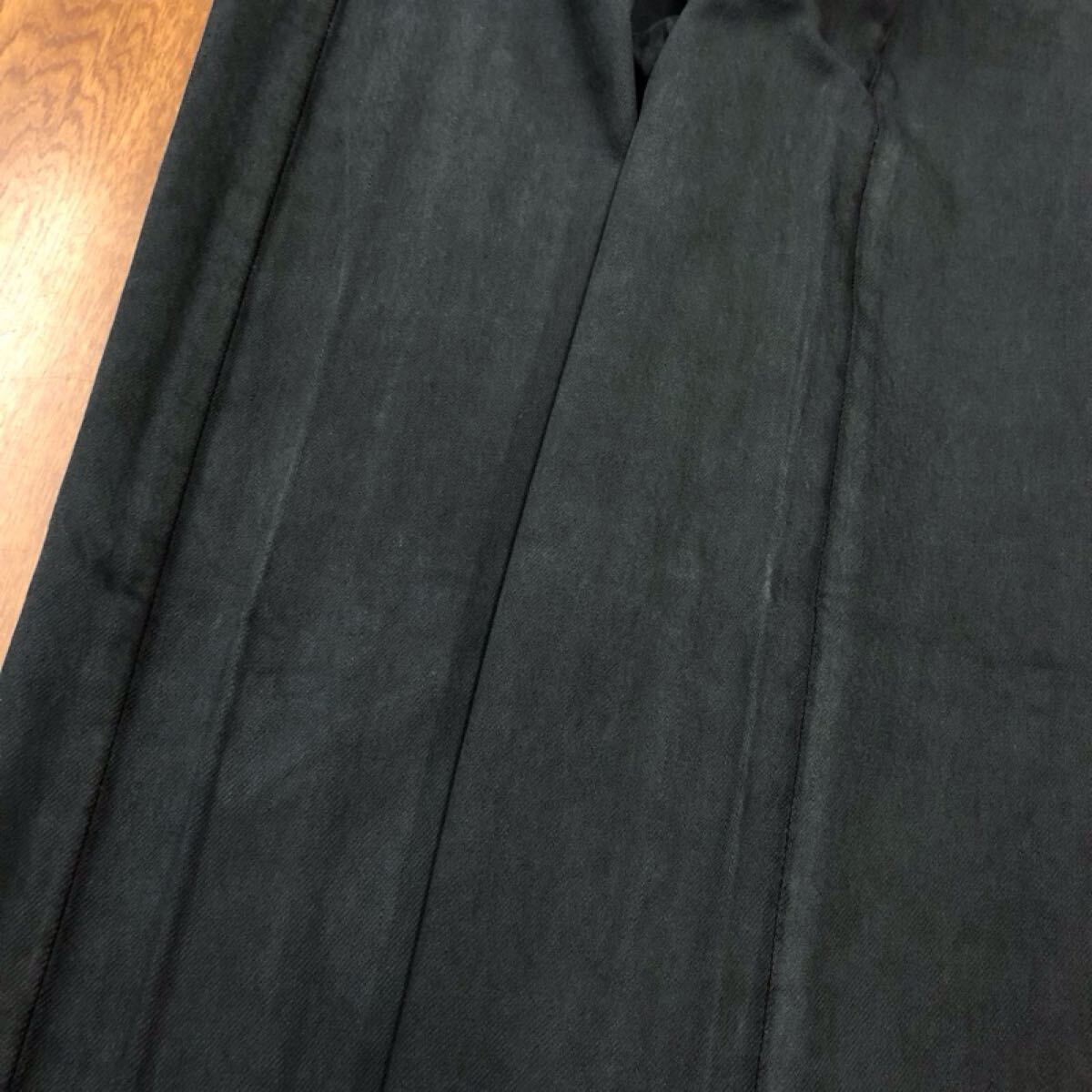 ●ウエスト→フロントボタンやジップは閉じ、ウエストの表中心と後ろ中心を合わせて机や床など平面な場所に置き、フラットに測れるよう生地を軽く手で押さえ、平置きしたパンツの左右端の最上部を計測、実寸した数値×2の表記をしてます。