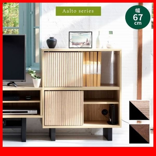 引き戸の波型が印象的な、落ち着きのある和とモダンなテイストを組み合わせた和モダンシリーズ"Aalto"。 シェルフは4か所の収納部が備わっており、好きな部分を引き戸で隠せるデザインとなっています。 |
