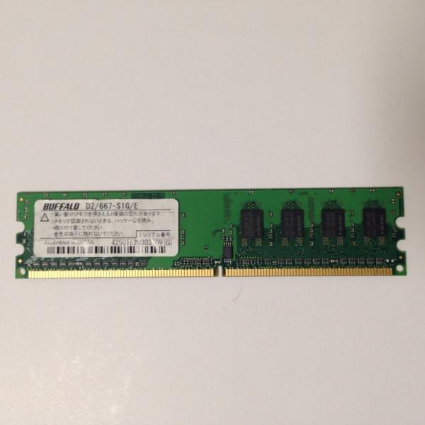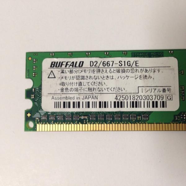 ★商品説明★ | 取引トラブルを防ぐ為、必ずこちらへアクセスして下さい。 写真は使い回しとなりますので、実際にお送りするものはラベル・チップ等が異なる場合も御座います。 ■仕様一覧 デスクトップPC用メモリー ※メーカー:Buffalo ※状態:中古品 ※容量:1GB ※メモリータイプ:DDR2-667 ※チップ規格:PC2-5300 ※数量:1枚 ご注意:こちらの商品は動作確認済となりますが、パソコンとの相性は保証致しませんので、よく適用機種をご確認の上、ご購入をご検討下さい。 相性保証の商品につきましては、メールにてお気軽にお問い合わせ下さい。 | |
