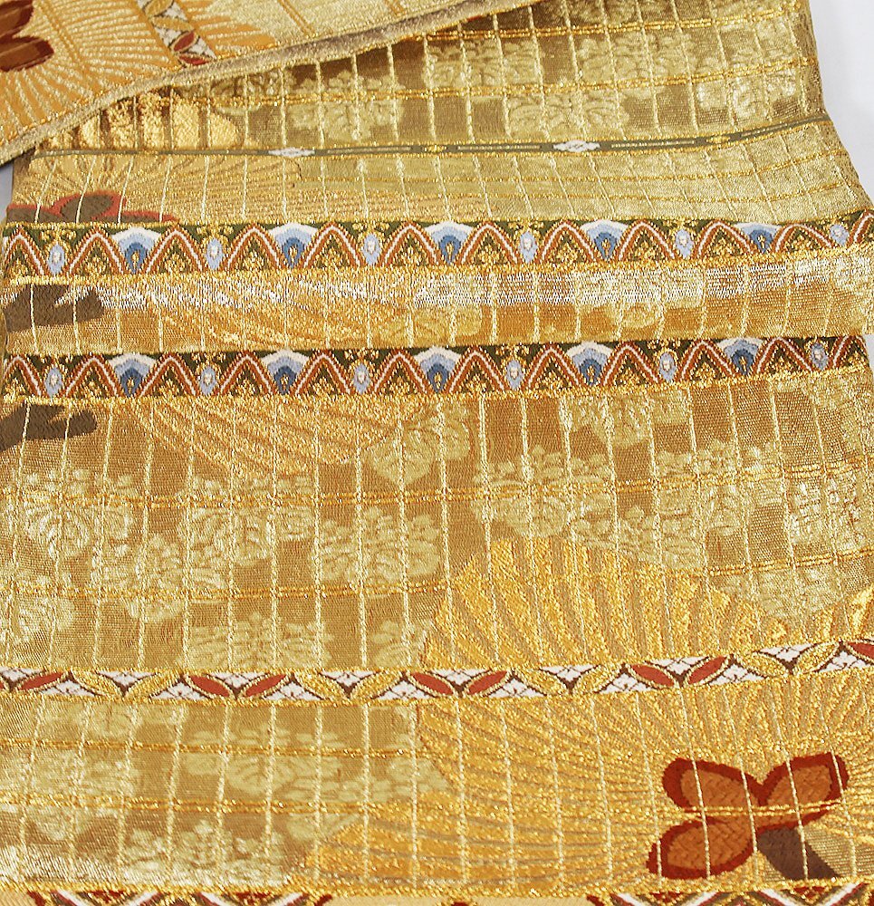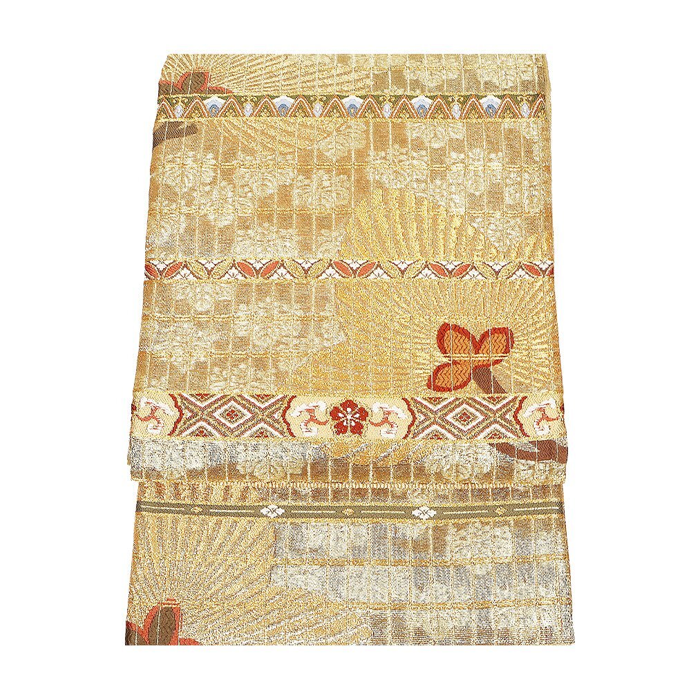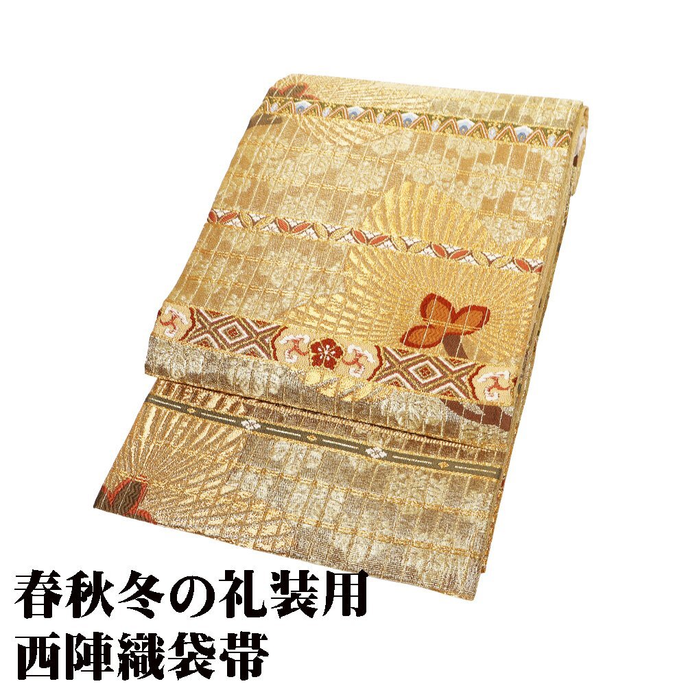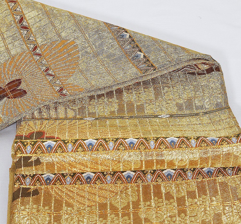 | 西陣織袋帯 金・緑地 松・桐・パルメット唐草文様 未使用品 仕立て上がり |