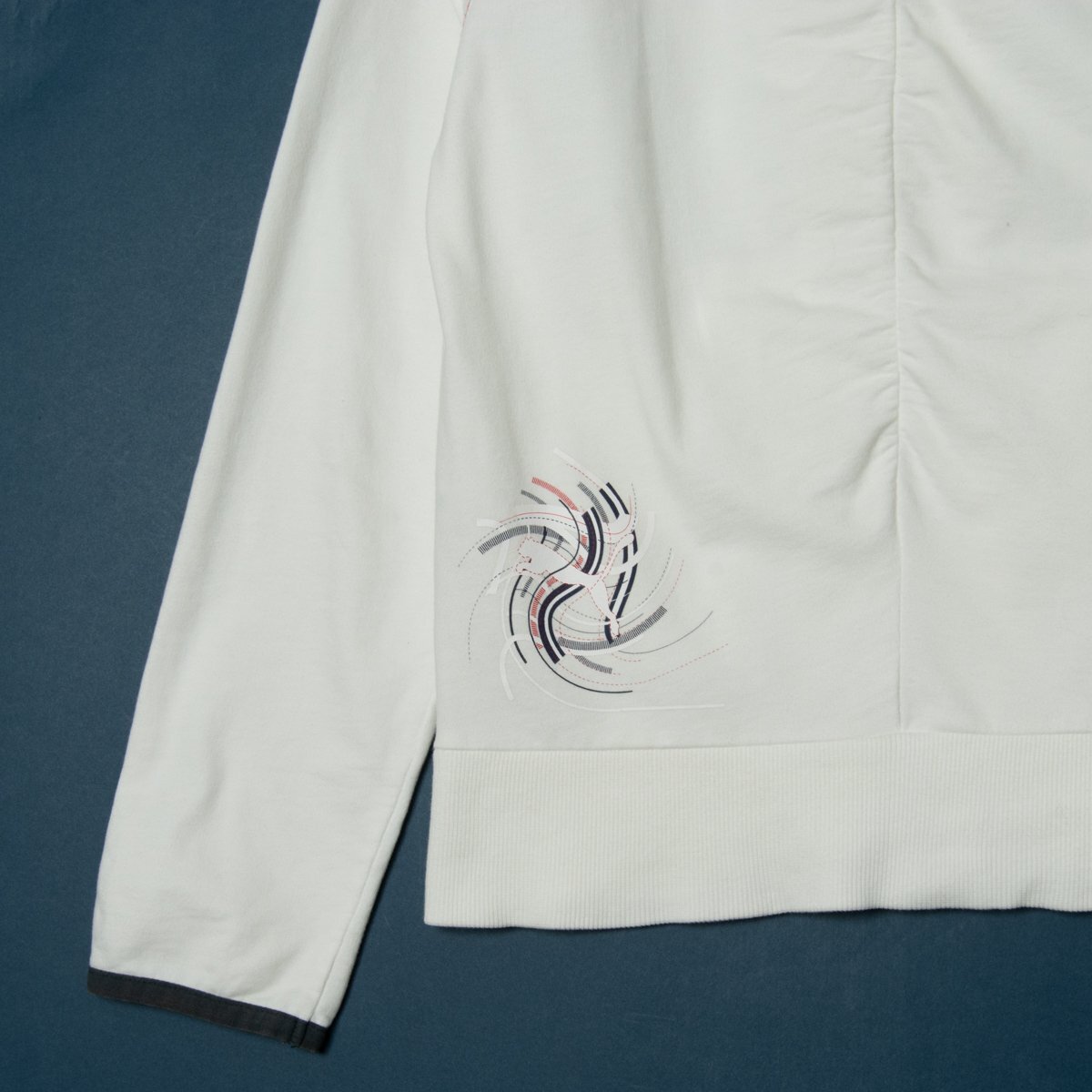 状態 | D 目立つ使用感、毛羽立ち、袖口・衿ぐり・右前身頃を主に黄ばみ汚れ、品質タグ一部印字消えがございます。 |