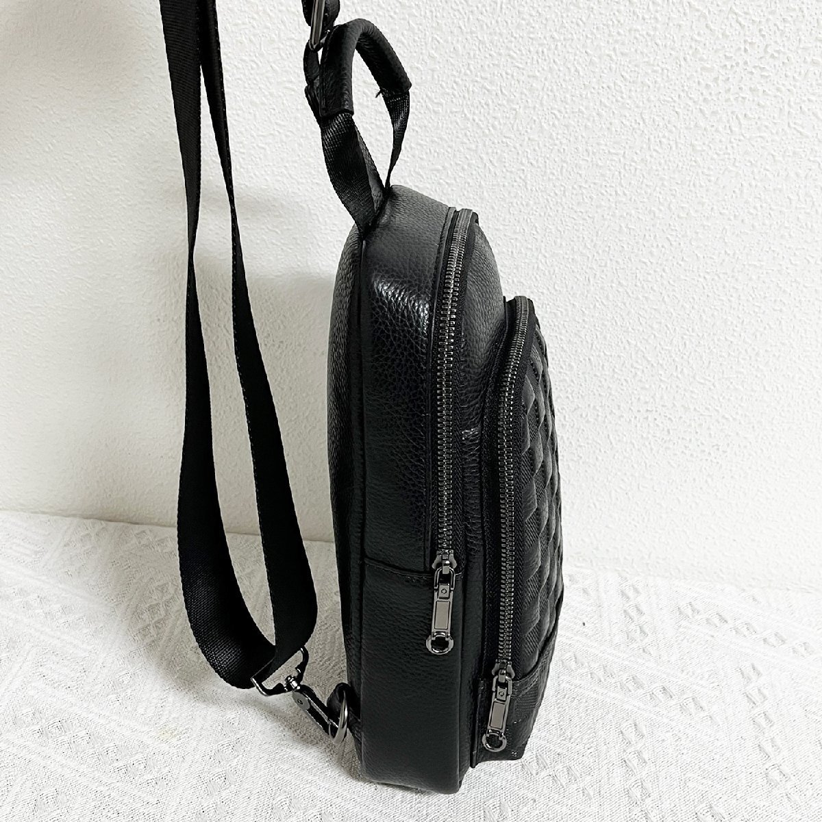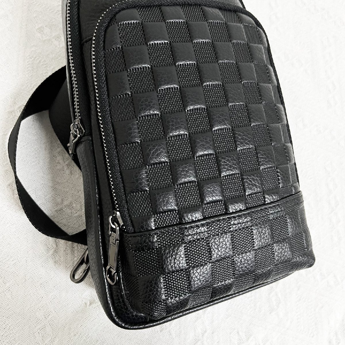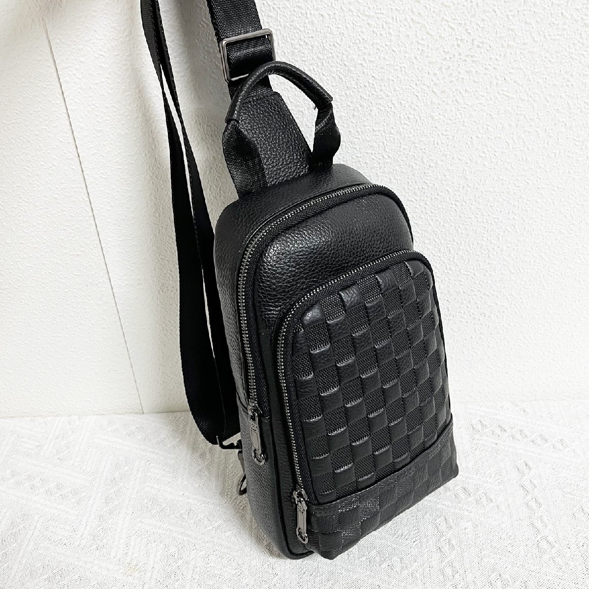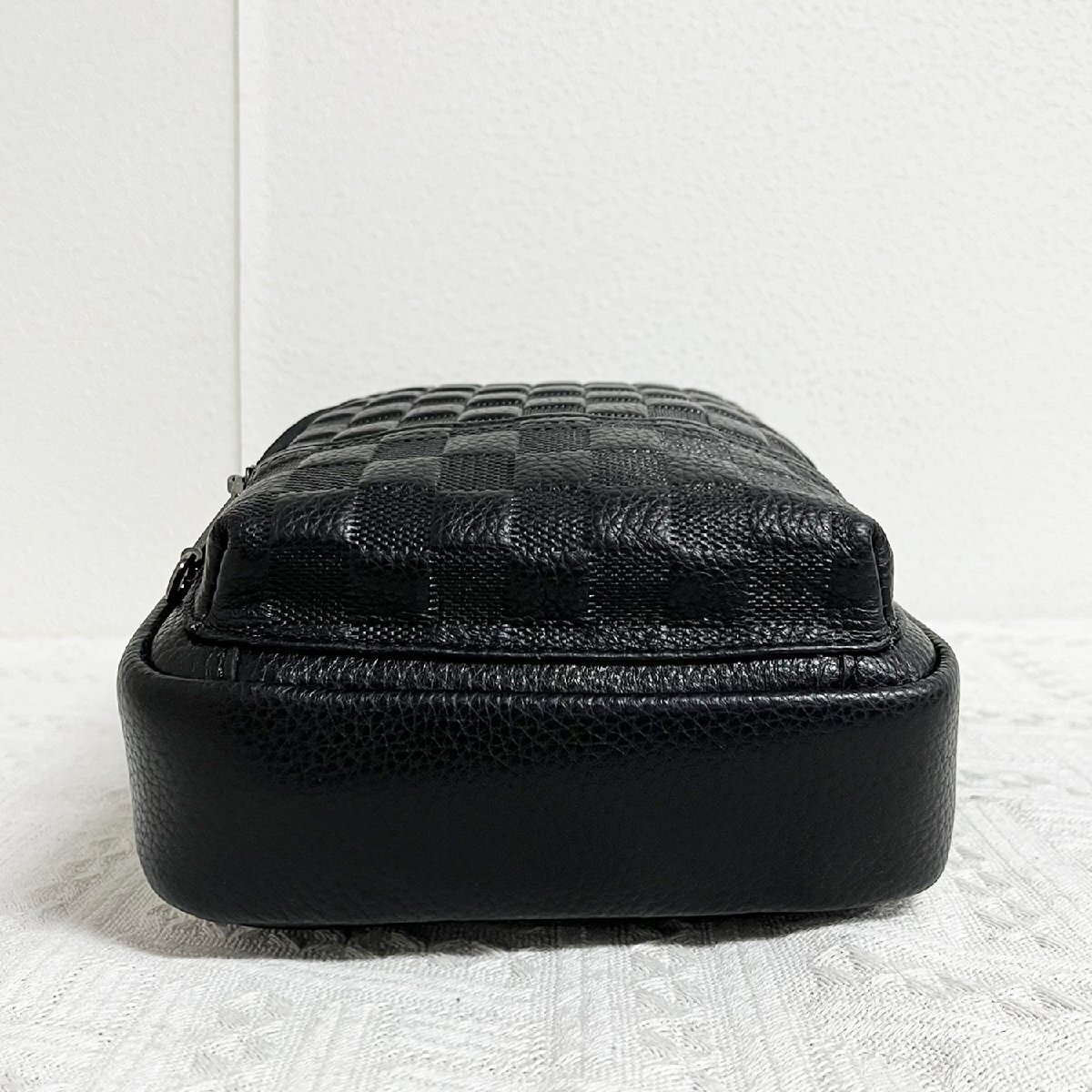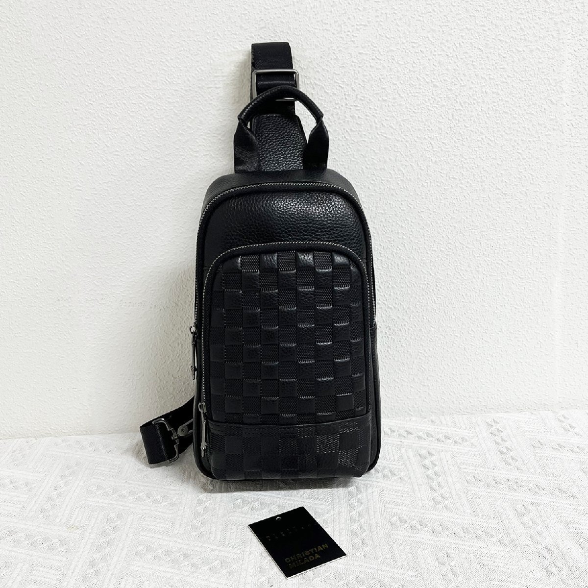定価12万★christian milada・ミラノ発・ボディバッグ★高級牛革 レザー ソフト チェック柄 立体感 斜めがけ ショルダーバッグ 通勤 メンズ
